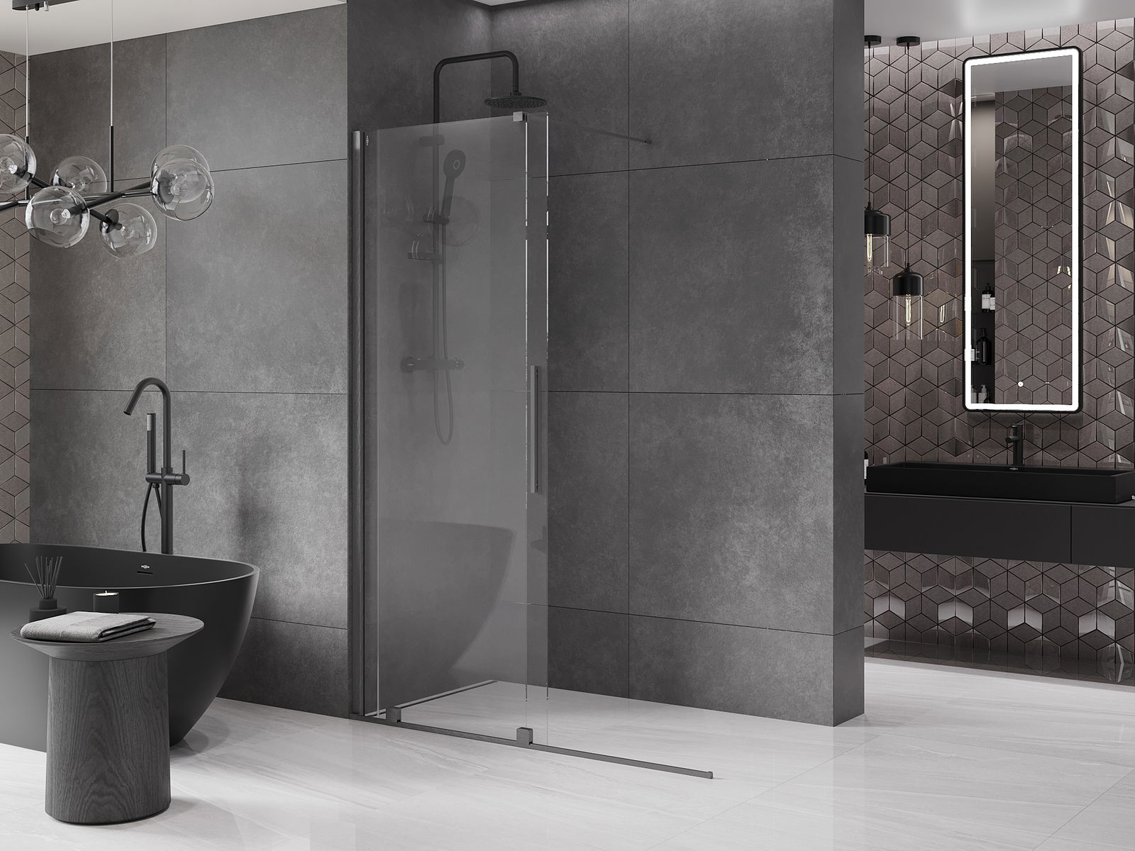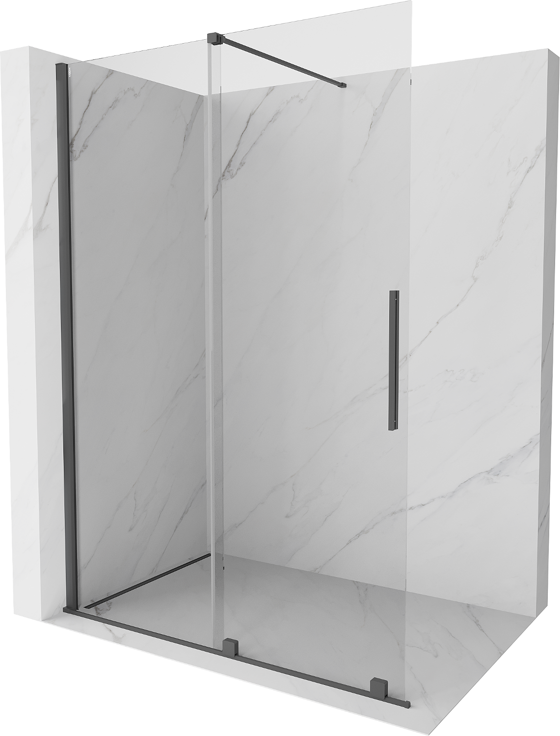 Mexen Velar bīdāma dušas siena Walk-in 130 x 200 cm, caurspīdīga 8 mm, tumši pelēka, matēta - 871-130-000-03-66