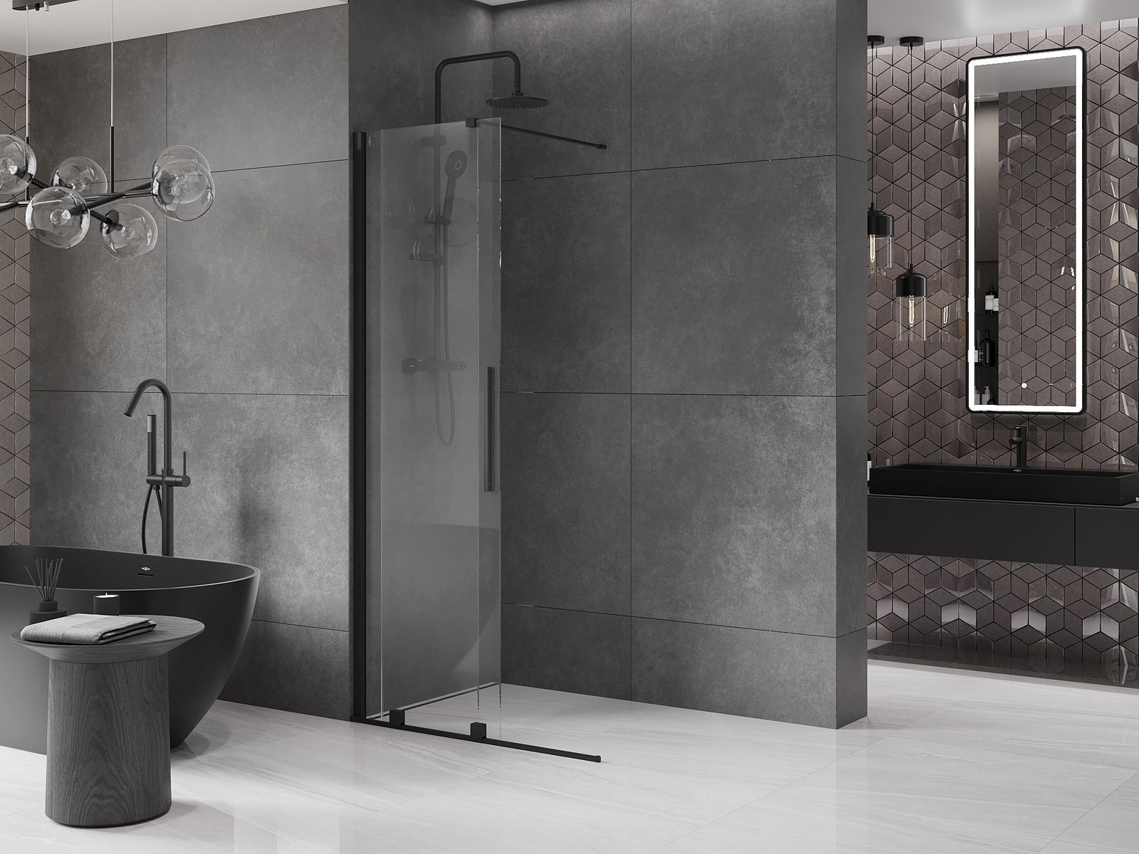 Mexen Velar Bīdāmā dušas siena Walk-in 120 x 200 cm, caurspīdīga 8 mm, melna - 871-120-000-03-70