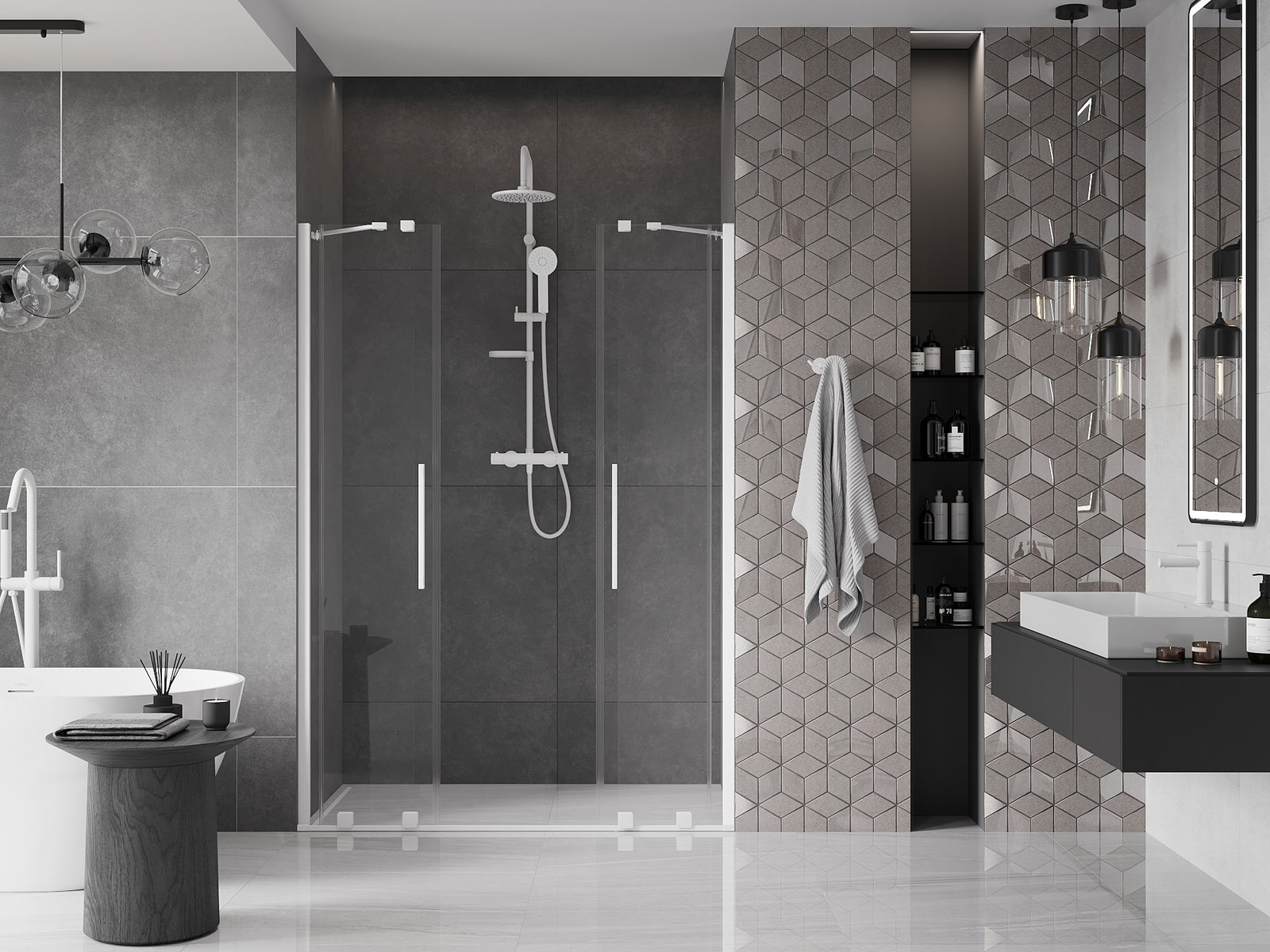 Pateicoties universālajai montāžas sistēmai, dušas durvis var uzstādīt no kreisās vai labās puses, atkarībā no vajadzībām. Tādējādi jūs varat viegli izstrādāt dušu, kas piemērota vannas istabas telpai.