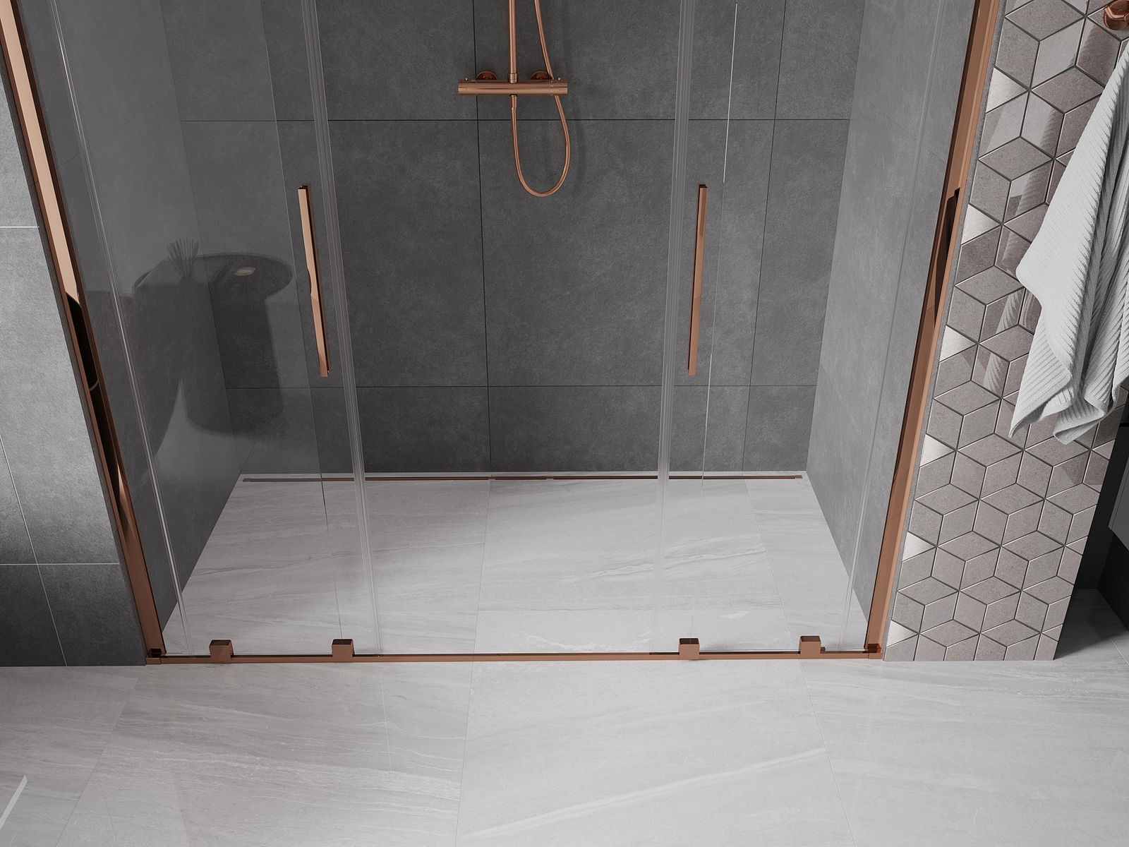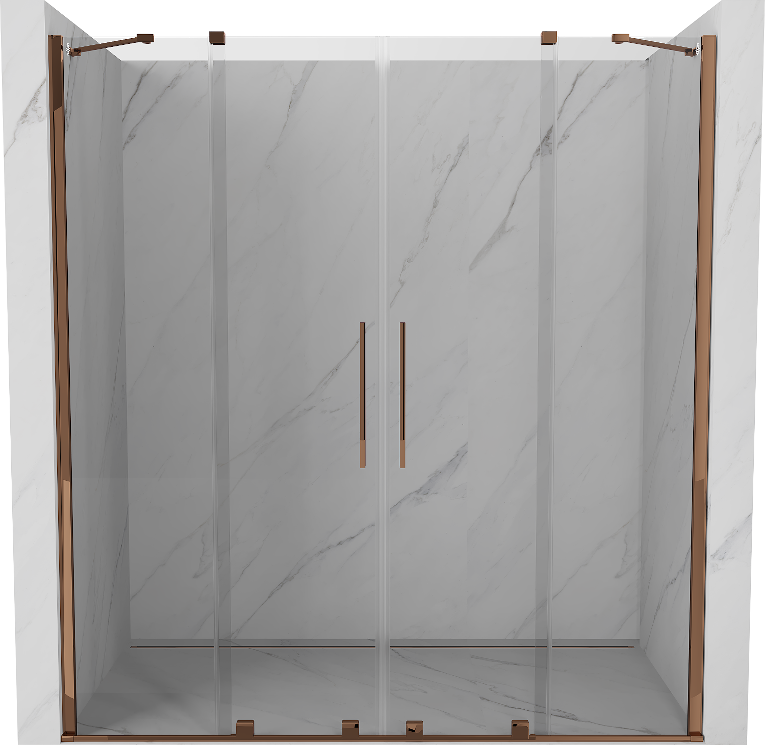 Mexen Velar Duo dušas durvis bīdāmās 180 cm, caurspīdīgas, rozā zelts - 871-180-000-02-60