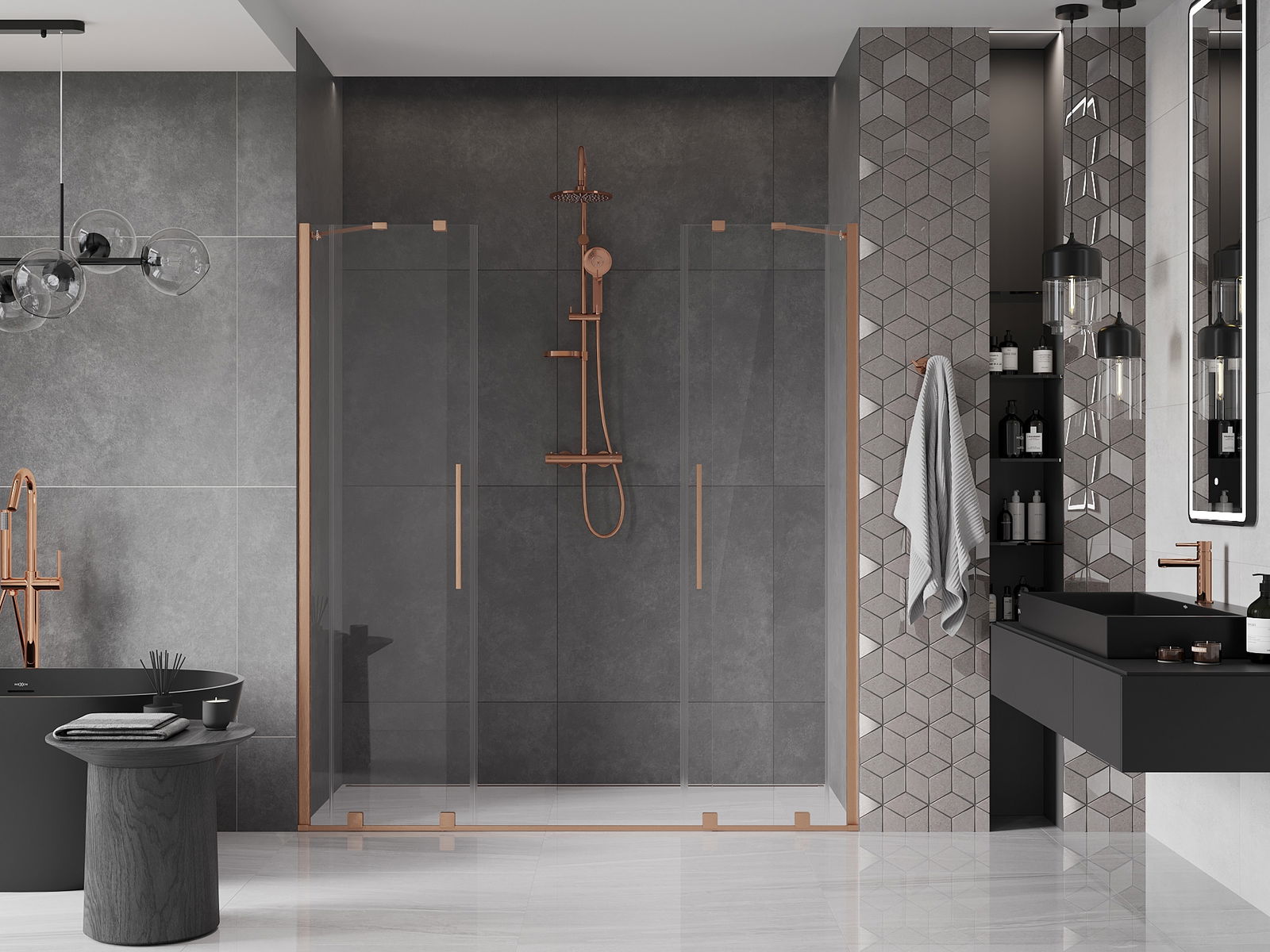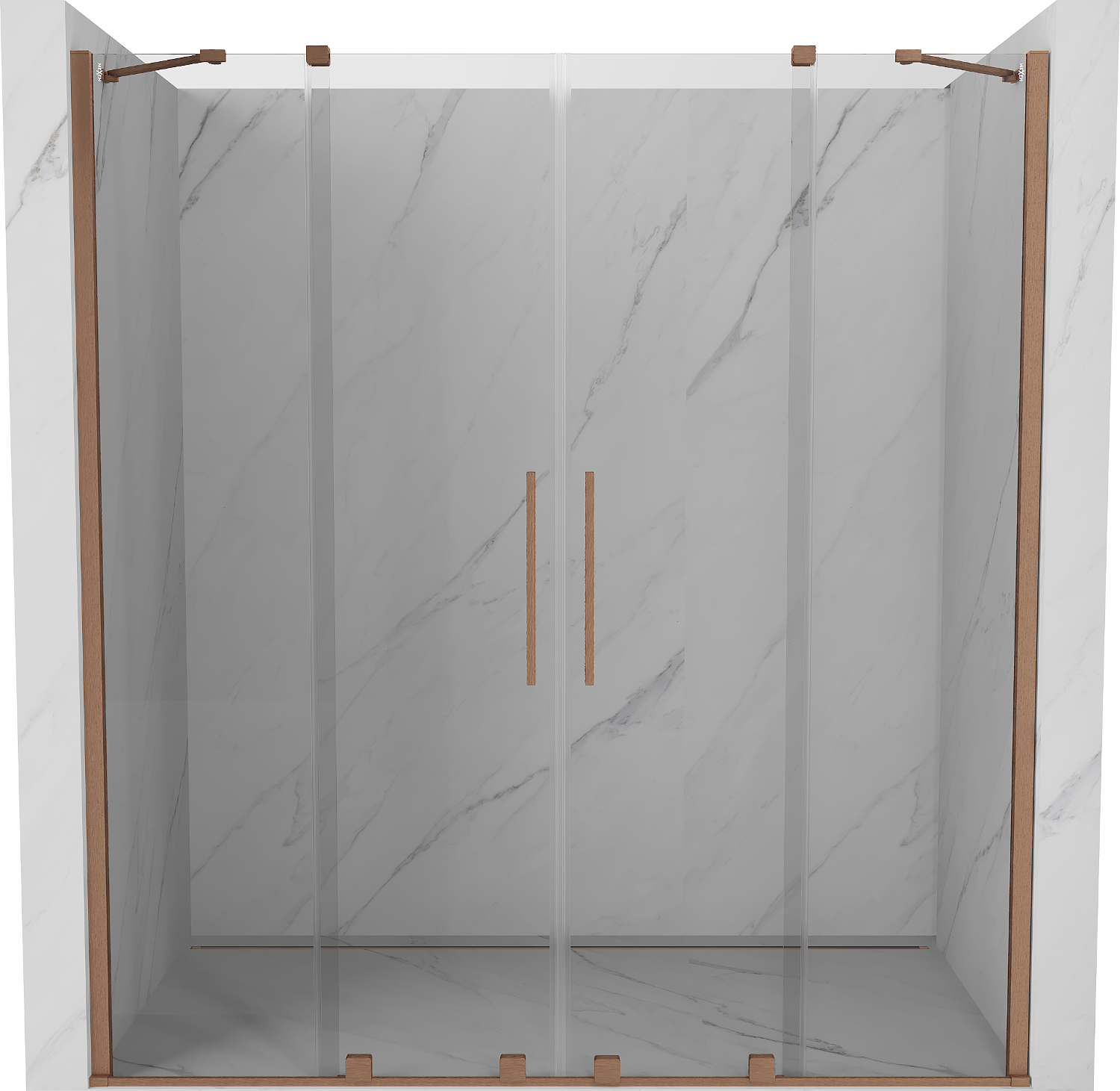 Mexen Velar Duo bīdāmās dušas durvis 180 cm, caurspīdīgas, matēts varš - 871-180-000-02-65