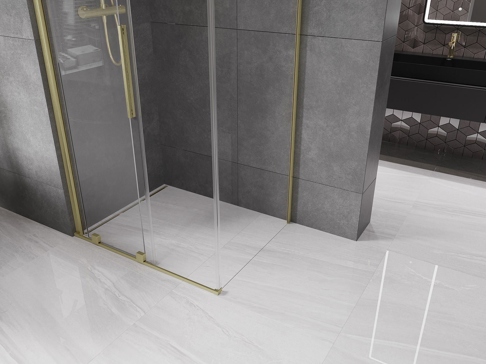 Mexen Velar bīdāma dušas kabīne 120 x 90 cm, caurspīdīga, matēti zelta - 871-120-090-01-55