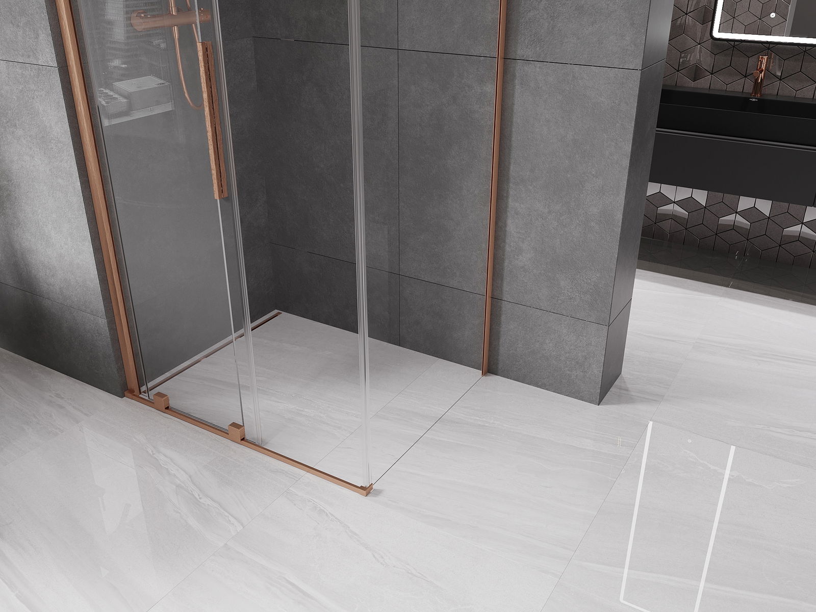 Mexen Velar bīdāmas dušas kabīne 100 x 90 cm, caurspīdīga, matēts varš - 871-100-090-01-65