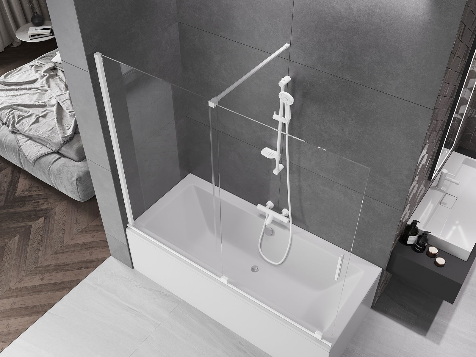 Mexen Velar divi daļēji bīdāma vannas ekrāns, 180 x 150 cm, caurspīdīgs, balts - 896-180-000-01-20