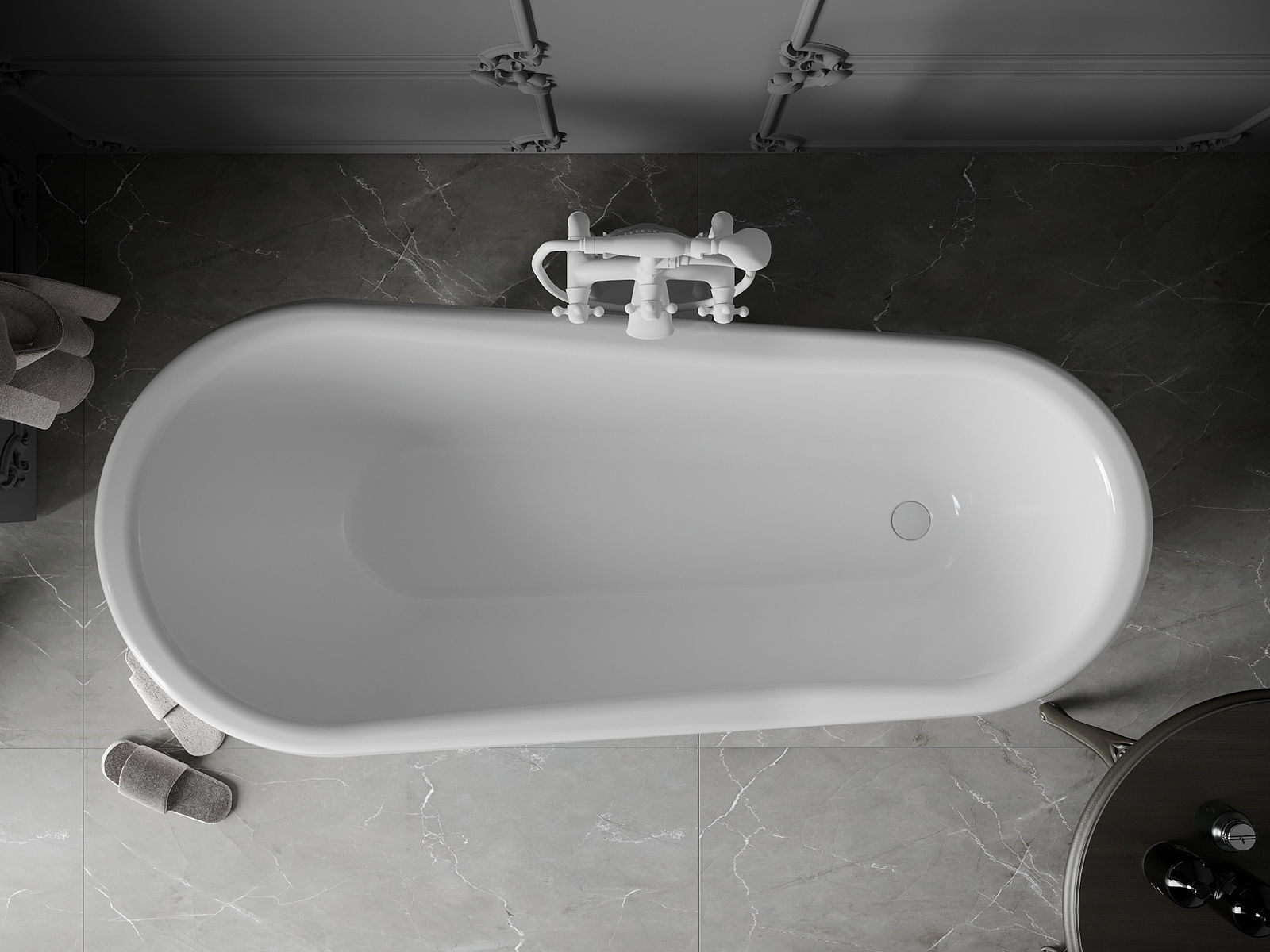 Komplektā ir sifons ar klik-klak aizbāzni, kas ļauj ātri atvērt un aizvērt vannas izplūdes vārstu. Aizmirstiet par aizbāžņa meklēšanu pirms peldes! Nepieciešams tikai viens klikšķis, lai apturētu vai izlaistu ūdeni.