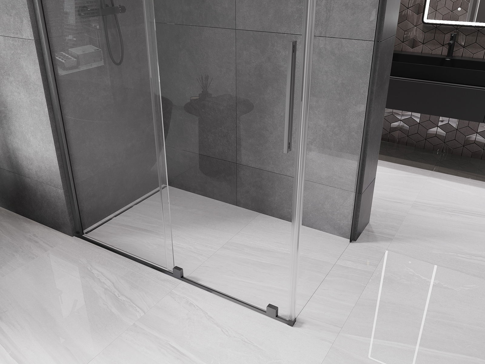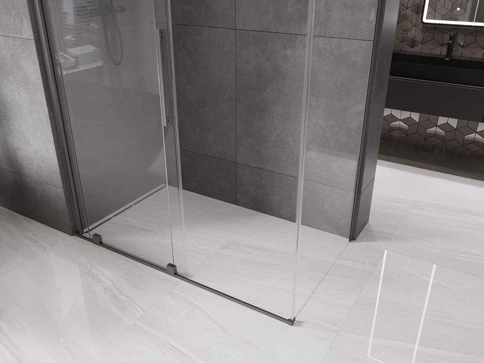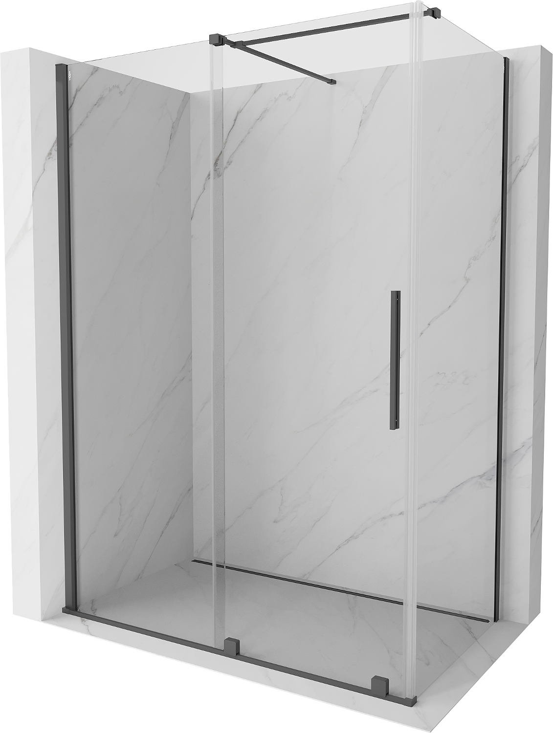 Mexen Velar bīdāma dušas kabīne 140 x 85 cm, caurspīdīga, birstēts pistoles pelēks - 871-140-085-01-66