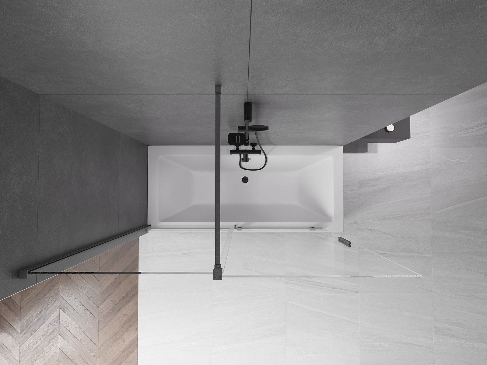 Efektīva aizsardzība pret ūdens izšļakstīšanos peldēšanās laikā. Ekrānam ir blīves, kas ideāli pielāgojas stikla virsmai un vannas malai. Funkcionāls risinājums, kas nodrošina drošību un vieglu tīrību.