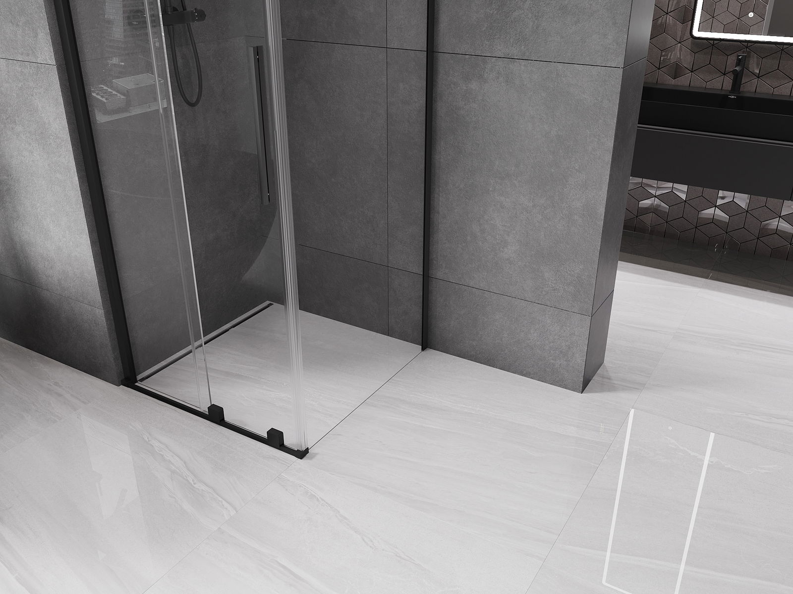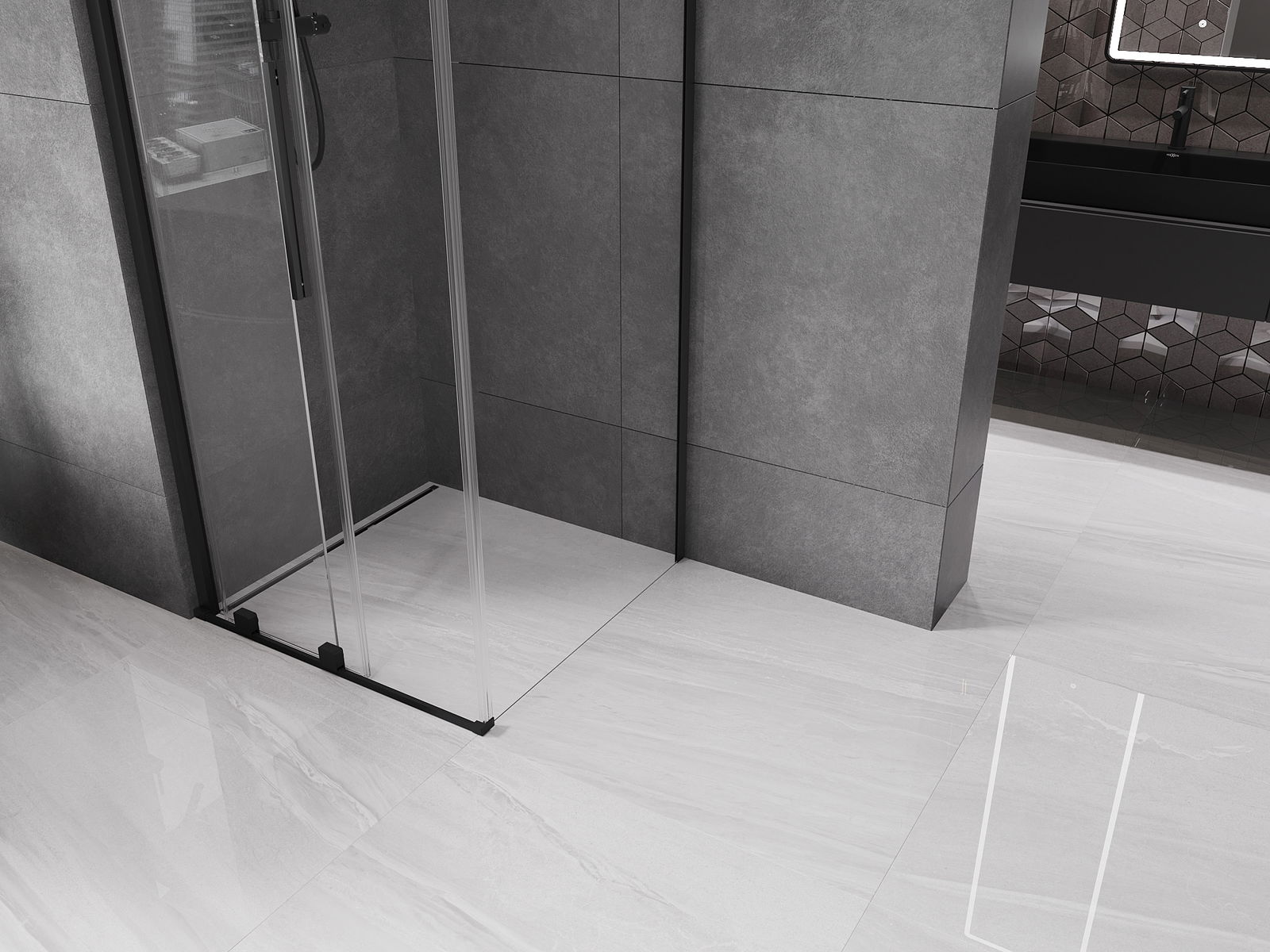 Mexen Velar bīdāma dušas kabīne 90 x 90 cm, caurspīdīga, melna - 871-090-090-01-70