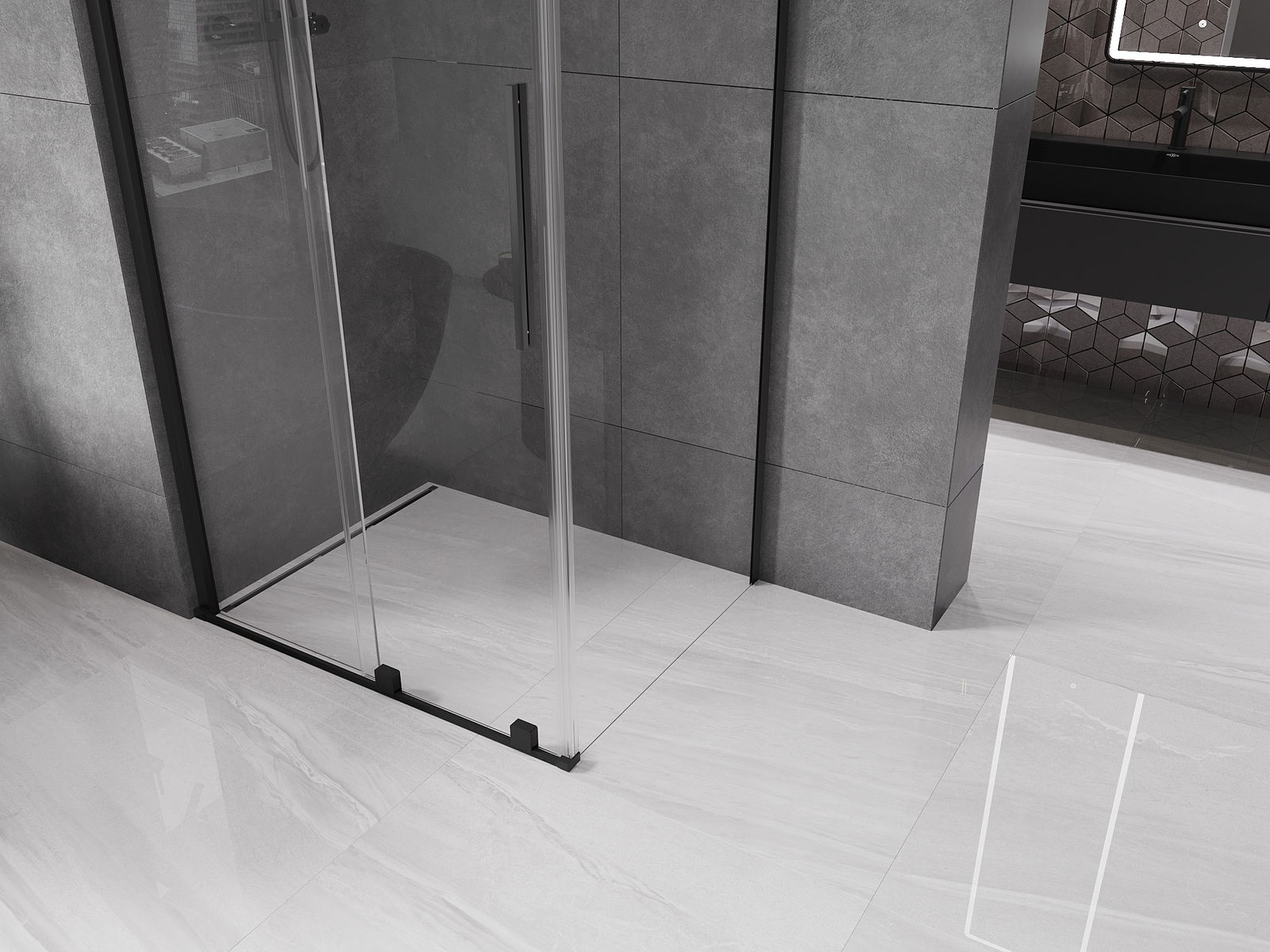 Mexen Velar bīdāmā dušas kabīne 100 x 120 cm, caurspīdīga, melna - 871-100-120-01-70