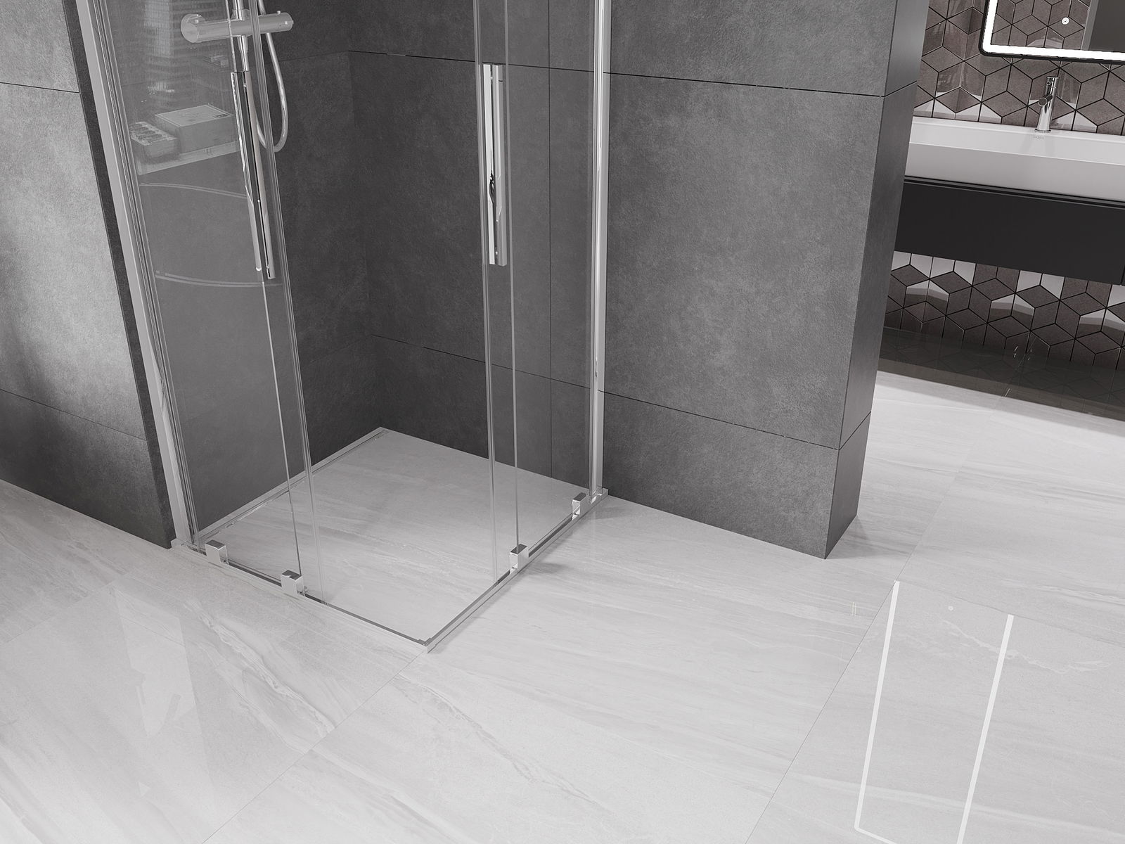 Produktu, atkarībā no vajadzībām, var uzstādīt gan uz dušas paliktņa, gan tieši uz grīdas. Universālā montāžas metode ļauj pielāgot produktu dažāda veida vannas istabām un telpas konfigurācijām.