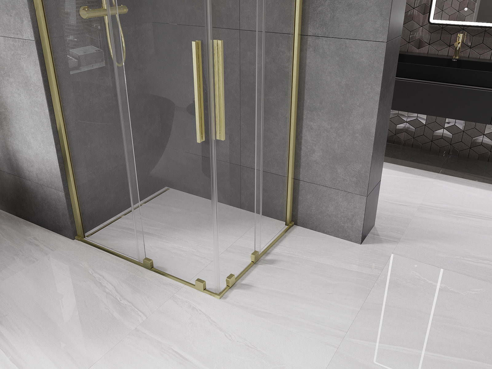 Mexen Velar Dušas kabīne Duo bīdāmās durvis 90 x 80 cm, caurspīdīga, matēts zelta - 871-090-080-02-55