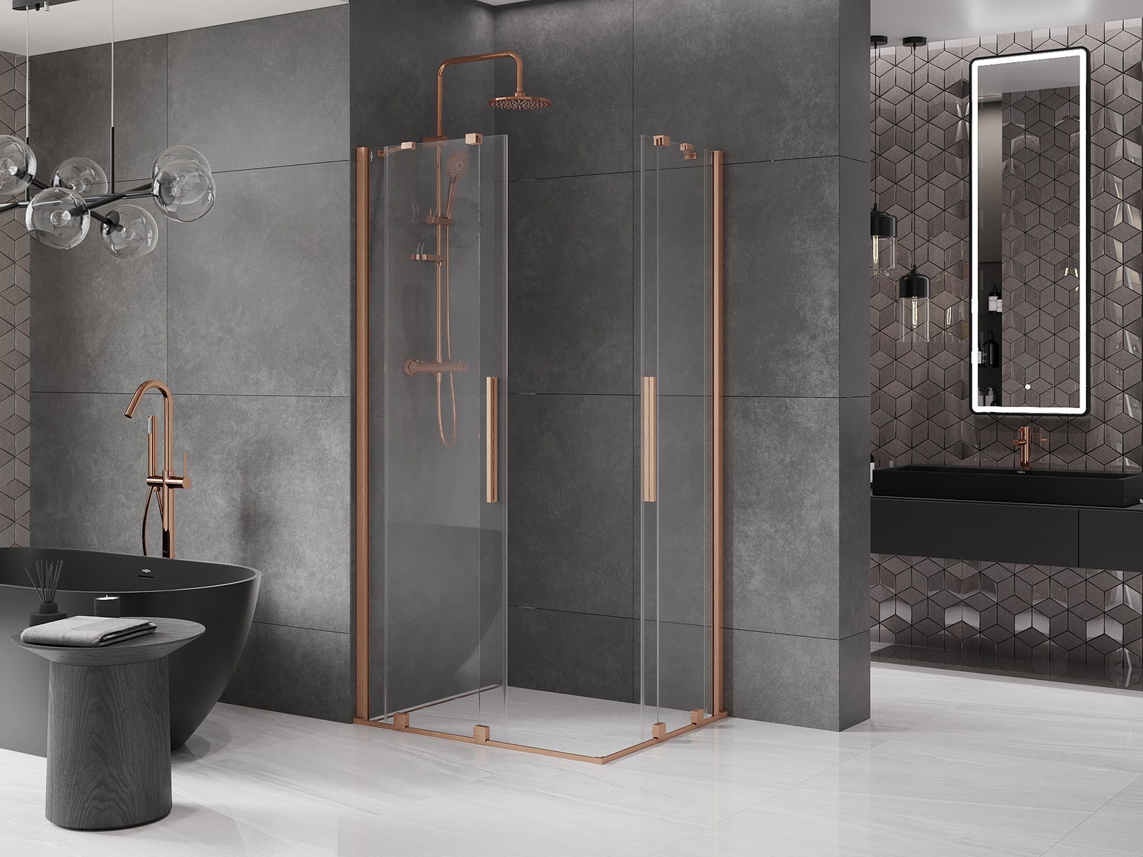 Mexen Velar Duo bīdāmā dušas kabīne 100 x 90 cm, caurspīdīga, matēts varš - 871-100-090-02-65