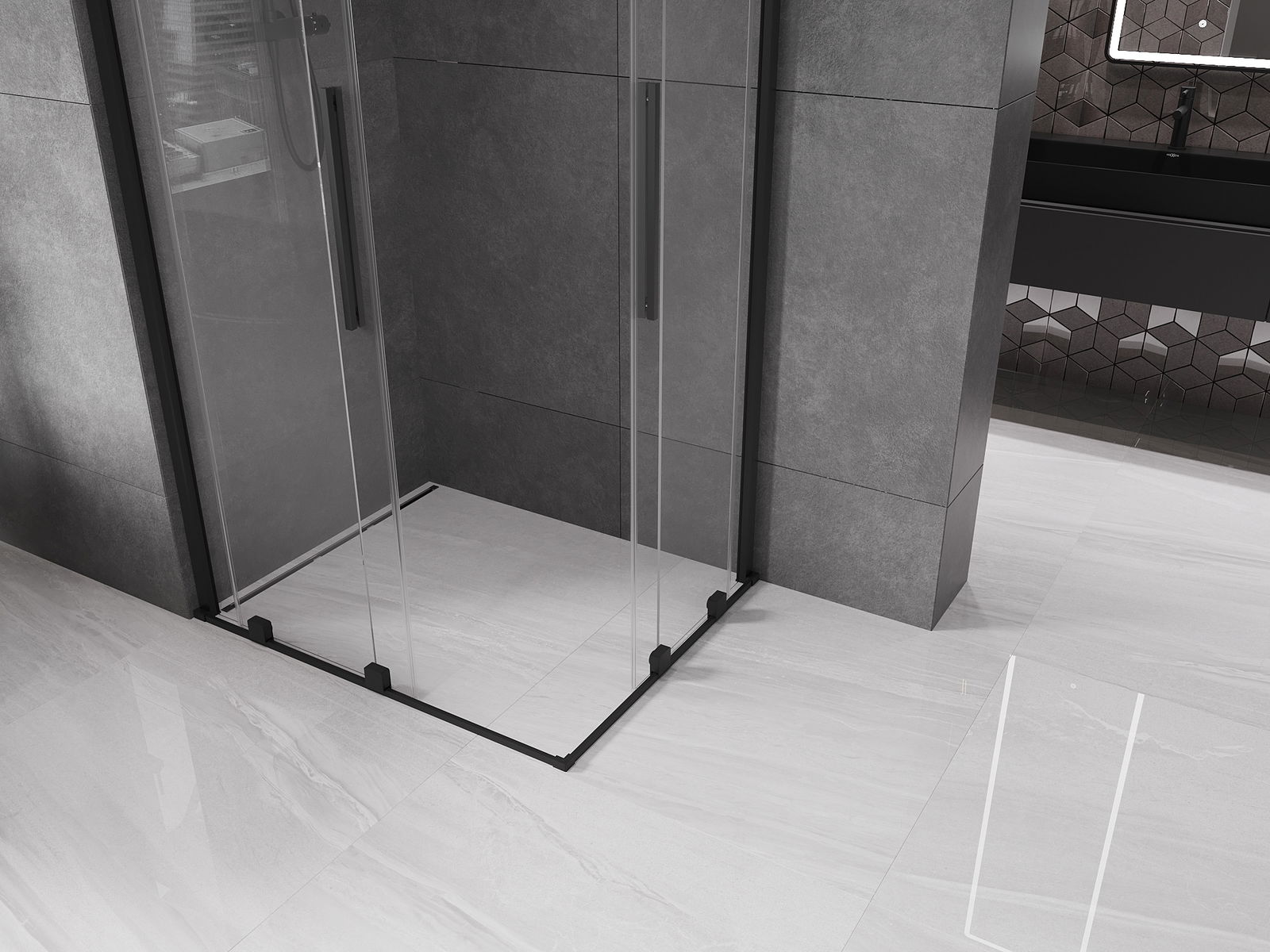 Mexen Velar Divas bīdāmas dušas kabīnes 100 x 90 cm, caurspīdīgas, melnas - 871-100-090-02-70