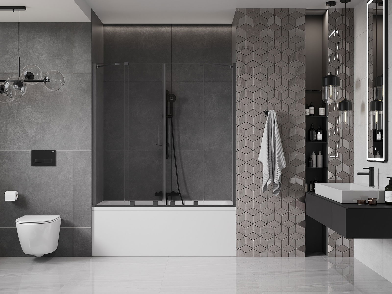 Mexen Velar Duo vannas ekrāns, 2-spārnu bīdams, 150 x 150 cm, caurspīdīgs, melns - 896-150-000-02-70