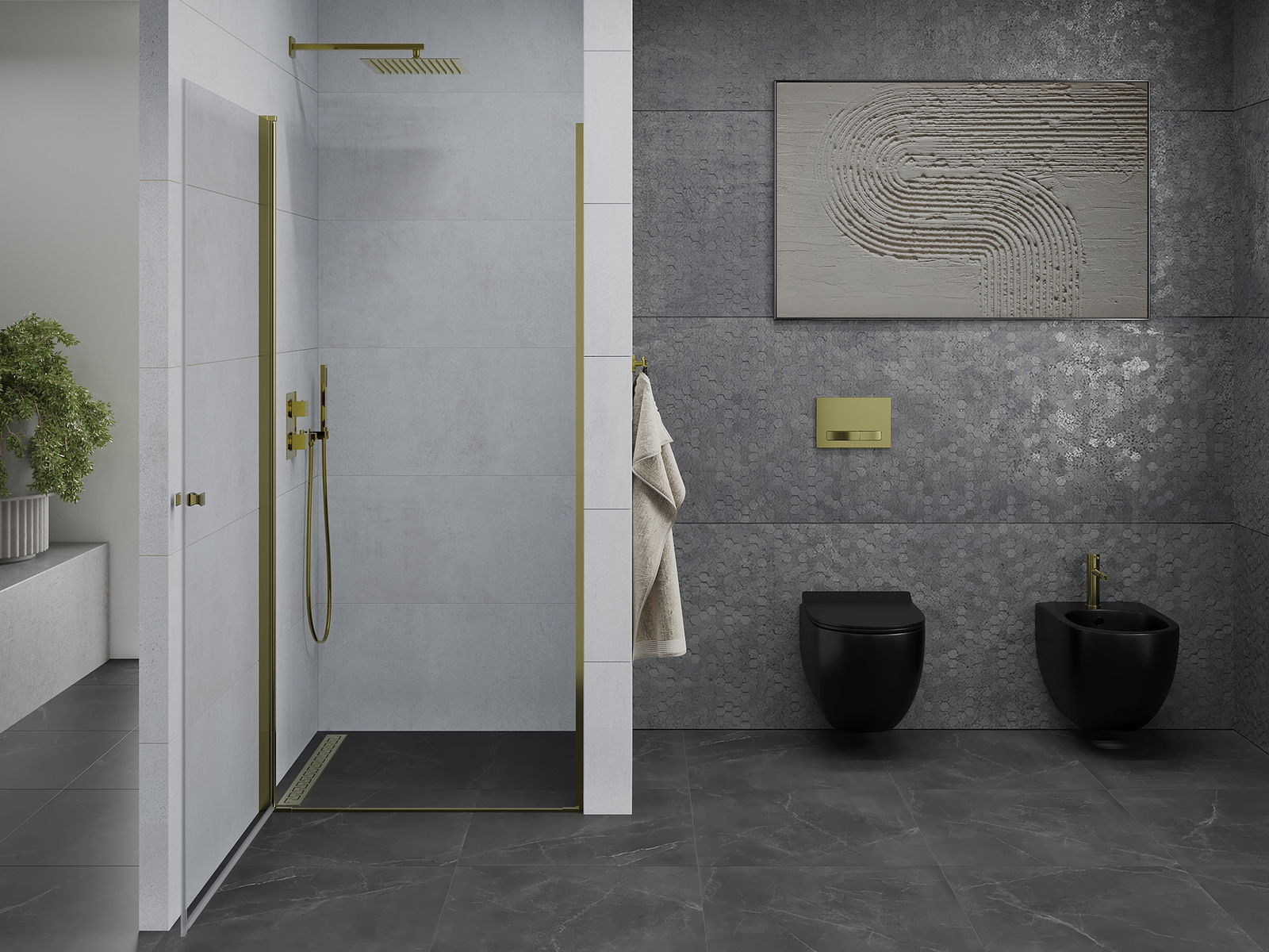 Mexen Pretoria dušas durvis veramās 70 cm, caurspīdīgas, zelta - 852-070-000-50-00