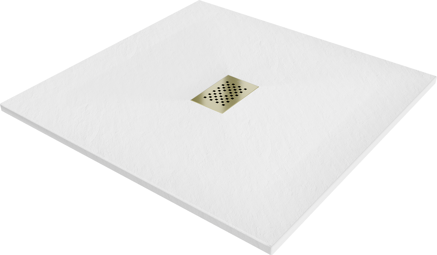 Mexen Hugo kvadrātveida dušas paliktnis SMC 100 x 100 cm, balts, zelta pārsegums - 42101010-G