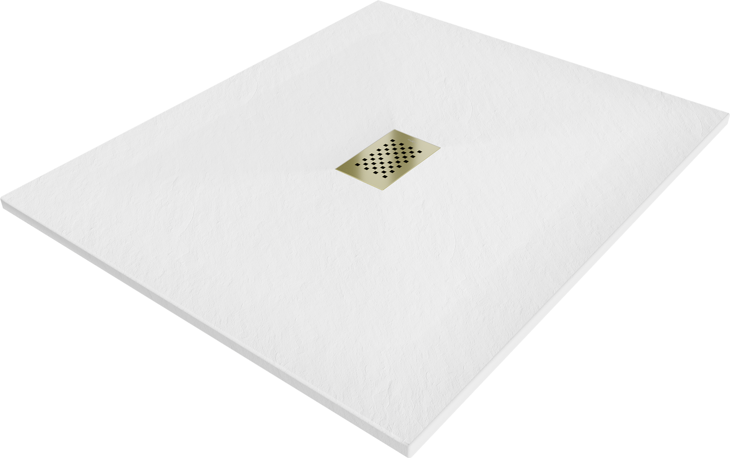 Mexen Hugo taisnstūrveida dušas paliktnis SMC 130 x 100 cm, balts, zelta pārsegs - 42101013-G