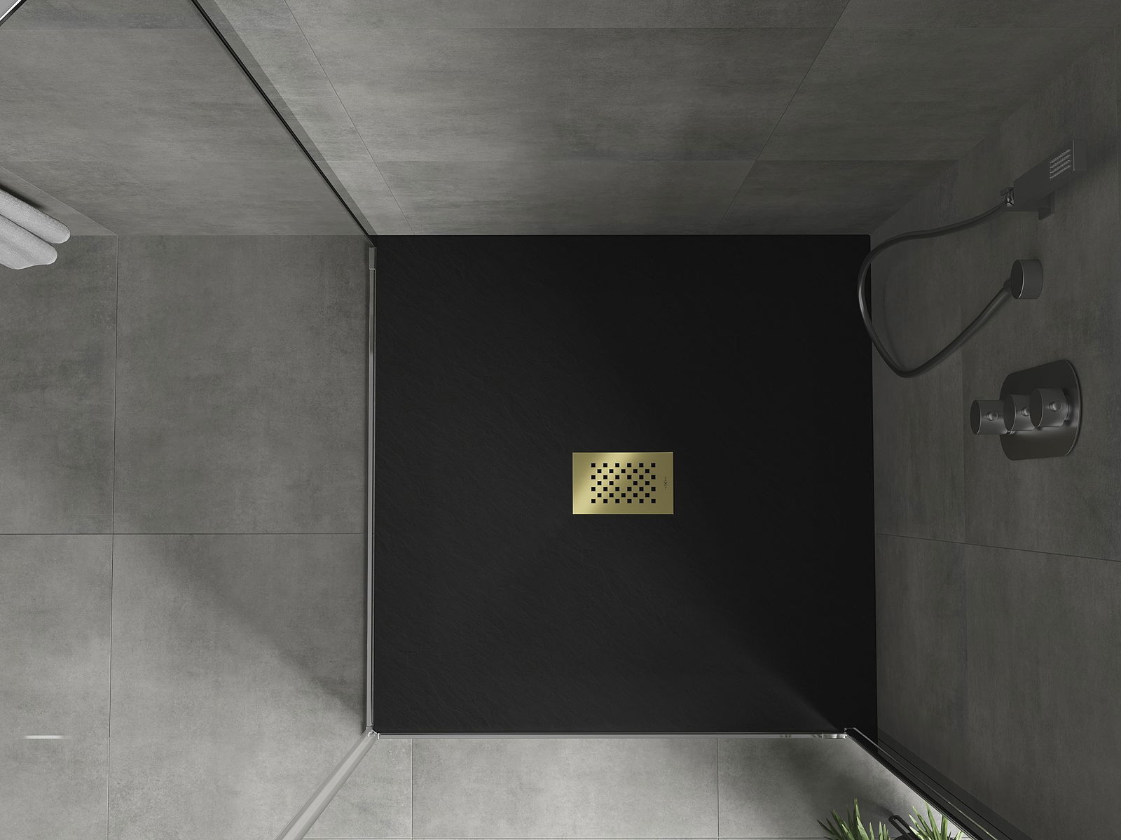 Mexen Hugo SMC kvadrātveida dušas paliktnis 100 x 100 cm, melns, zelta aizsargvāks - 42701010-G
