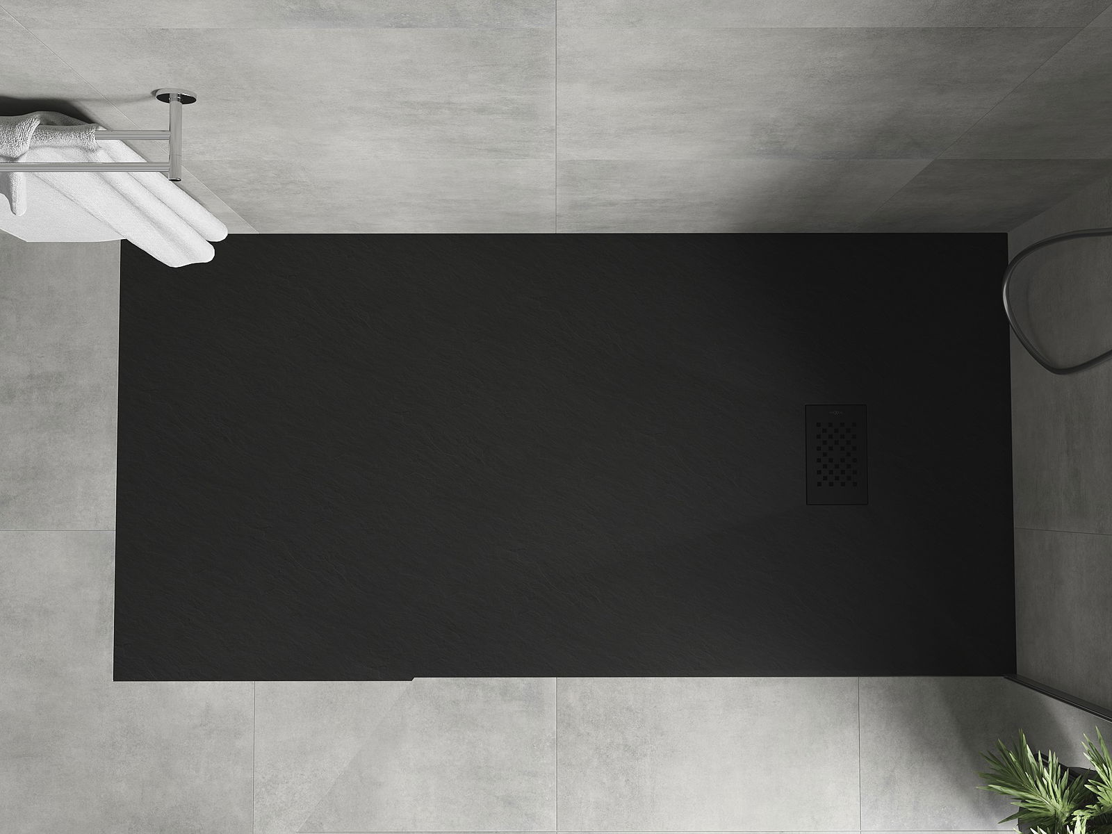 Mexen Hugo taisnstūrveida dušas paliktnis SMC 180 x 90 cm, melns, melna segbūve - 42709018-B