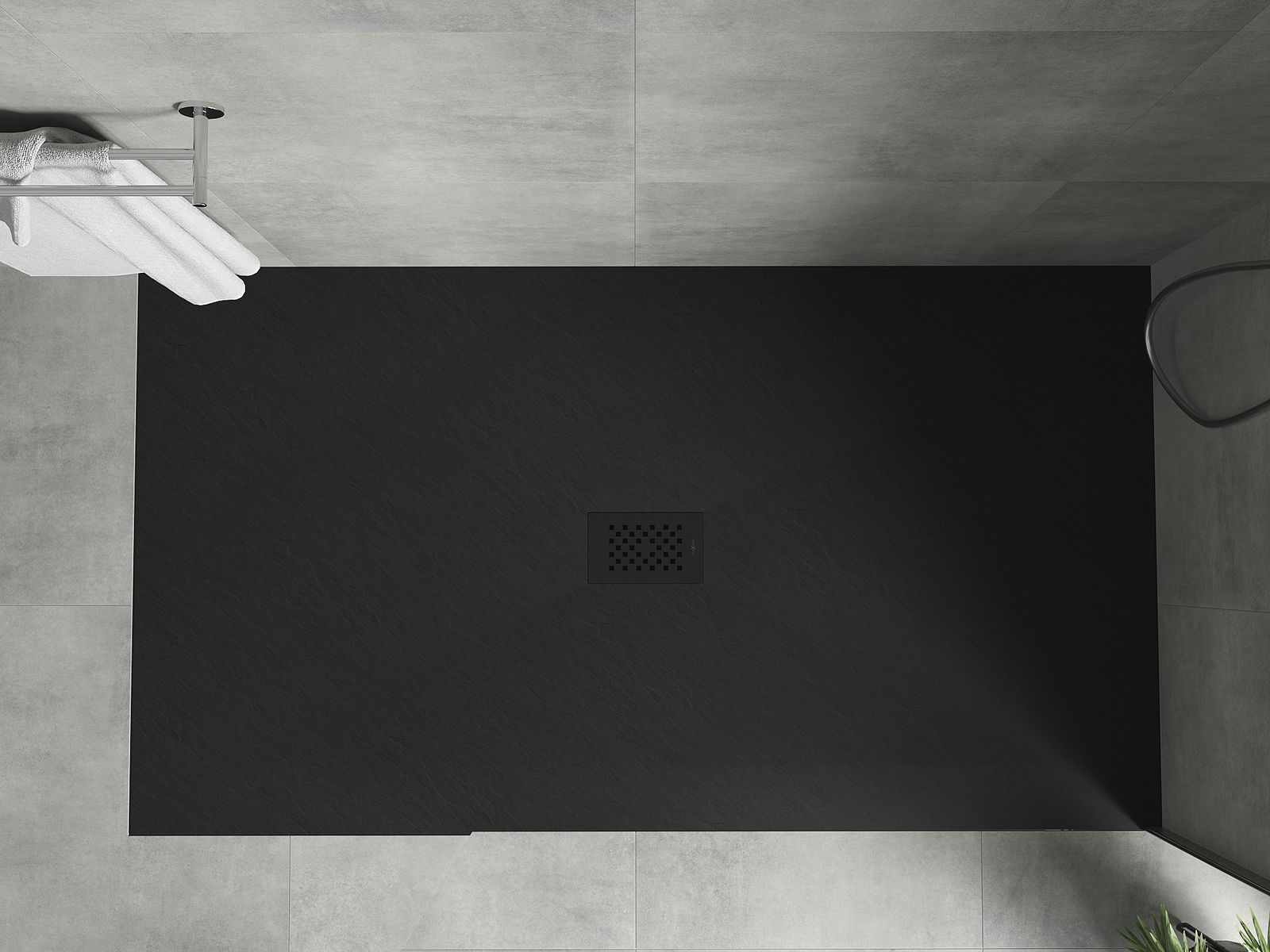 Mexen Hugo taisnstūra dušas paliktnis SMC 160 x 100 cm, melns, melns vāks - 42701016-B