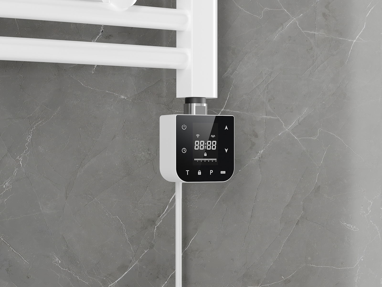 Komforta opcija ir funkcionalitāte, kas ļauj iestatīt apkures temperatūru izvēlētajā stundas skalā, kas var būt īpaši noderīgi situācijās, kad nepieciešams žāvēt priekšmetus, piemēram, dvieļus vai telpas.