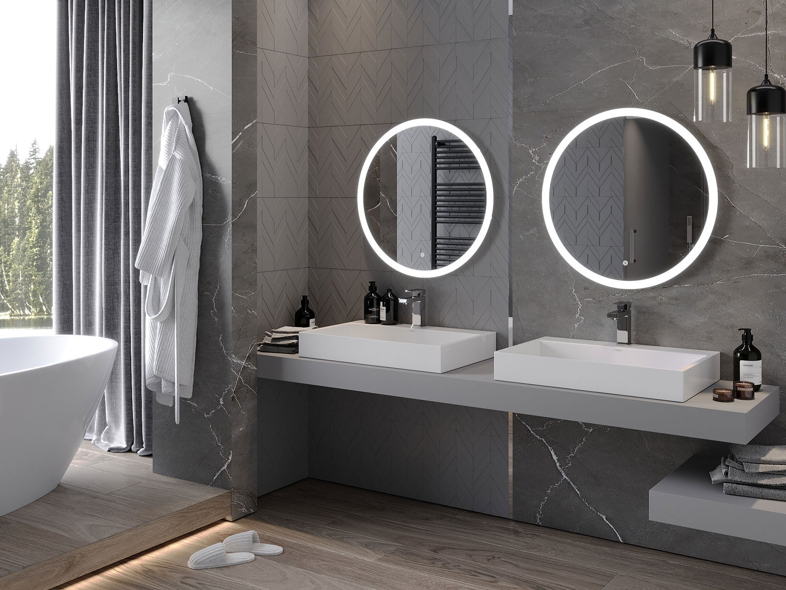 LED apgaismojums pie spoguļa ir praktisks elements, kas atvieglo ikdienas kopšanu un sniedz iespēju ideāli apgaismot seju. Apgaismojums piešķir vannasistabai modernu apdari, akcentējot tās eleganto interjeru.