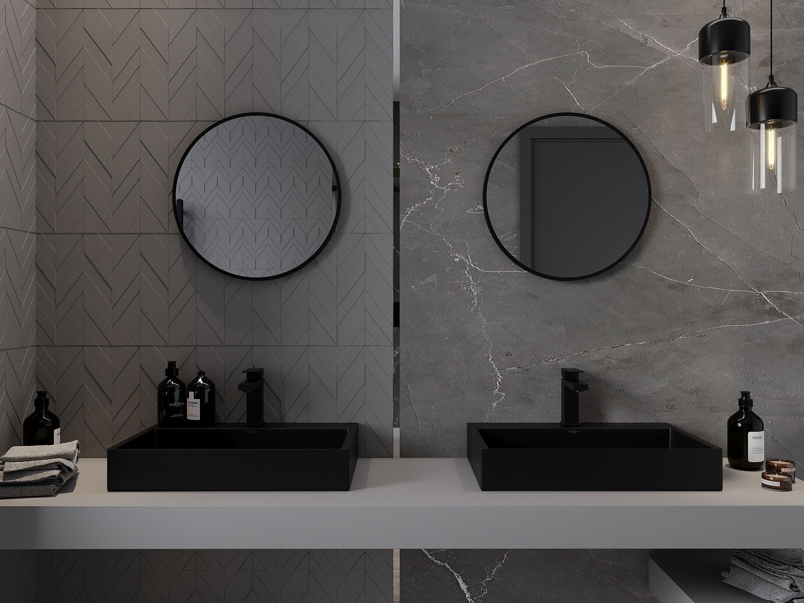 Mexen Loft apaļais vannas istabas spogulis 50 cm, melns rāmis - 9850-050-050-000-70