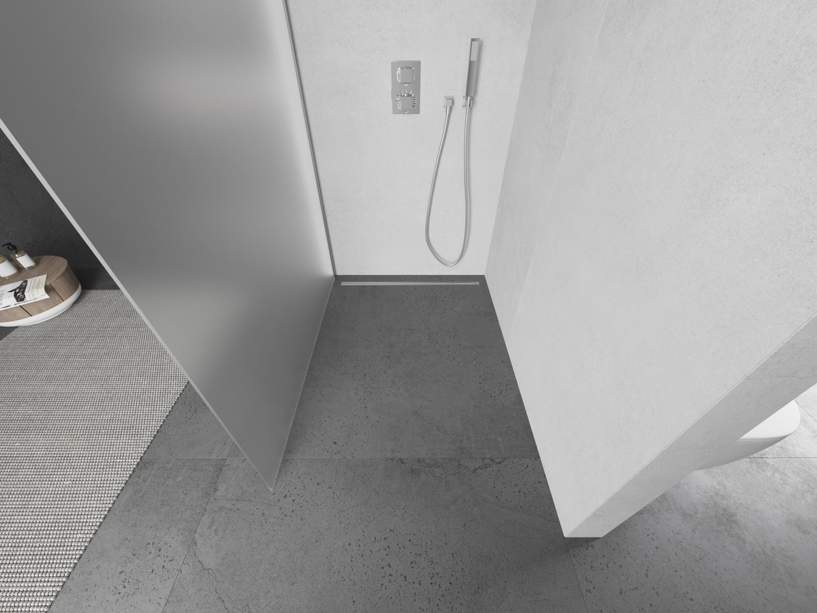 Produktu, atkarībā no vajadzībām, var uzstādīt gan uz dušas paliktņa, gan tieši uz grīdas. Universālā montāžas metode ļauj pielāgot produktu dažāda veida vannas istabām un telpas konfigurācijām.