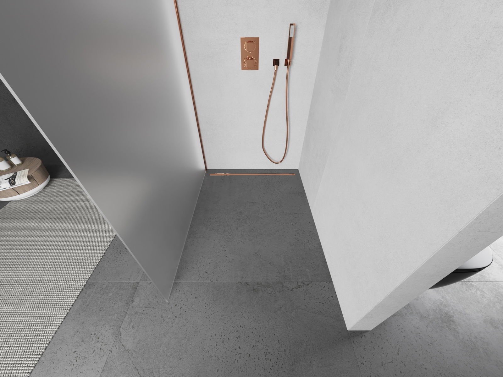 Mexen Kioto dušas siena Walk-in 110 x 200 cm, matēts stikls 8 mm, rozā zelts - 800-110-101-60-30