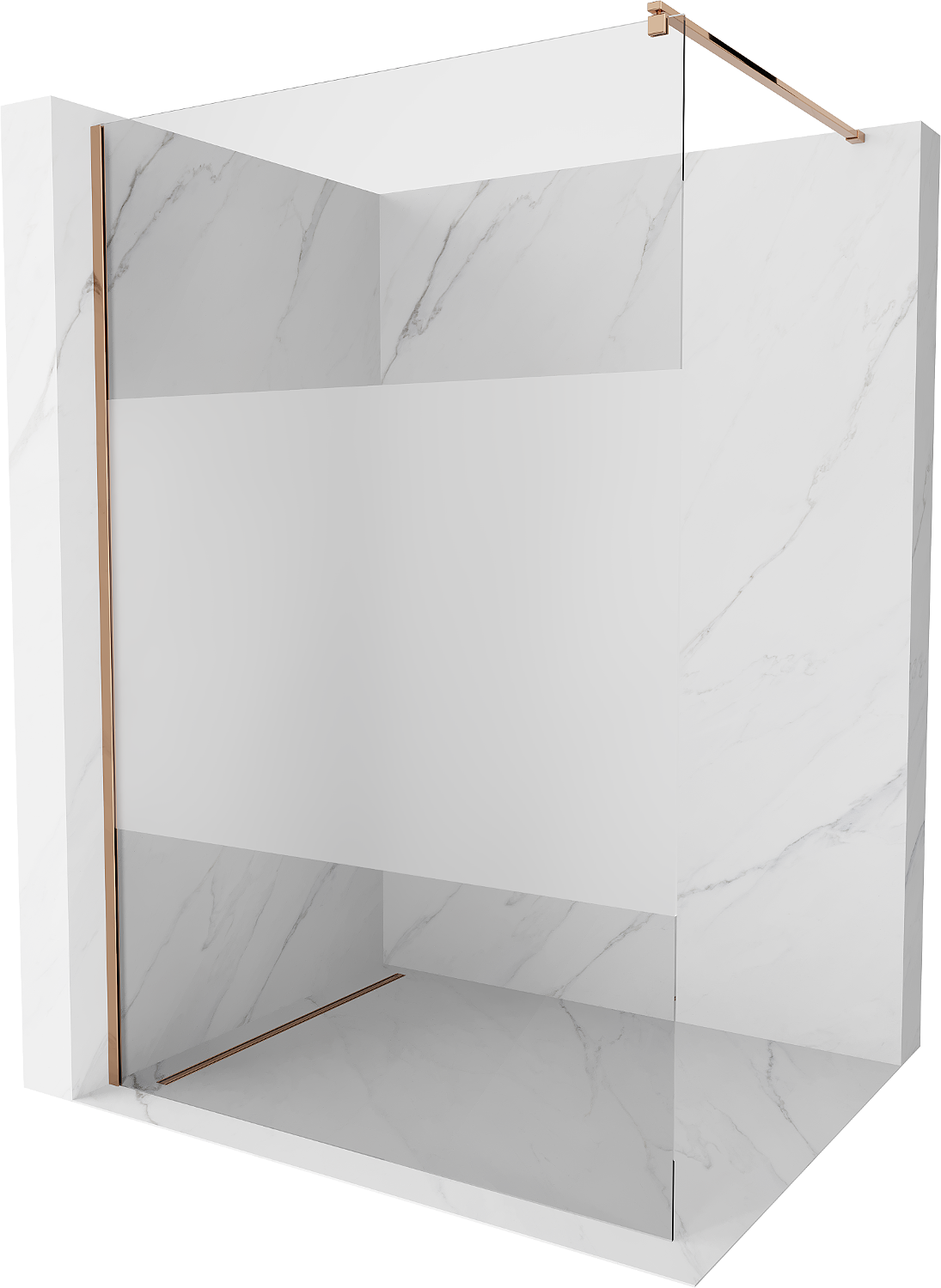 Mexen Kioto duša sienas panelis Walk-in 120 x 200 cm, caurspīdīgs/matēts 8 mm, rozā zelts - 800-120-101-60-35