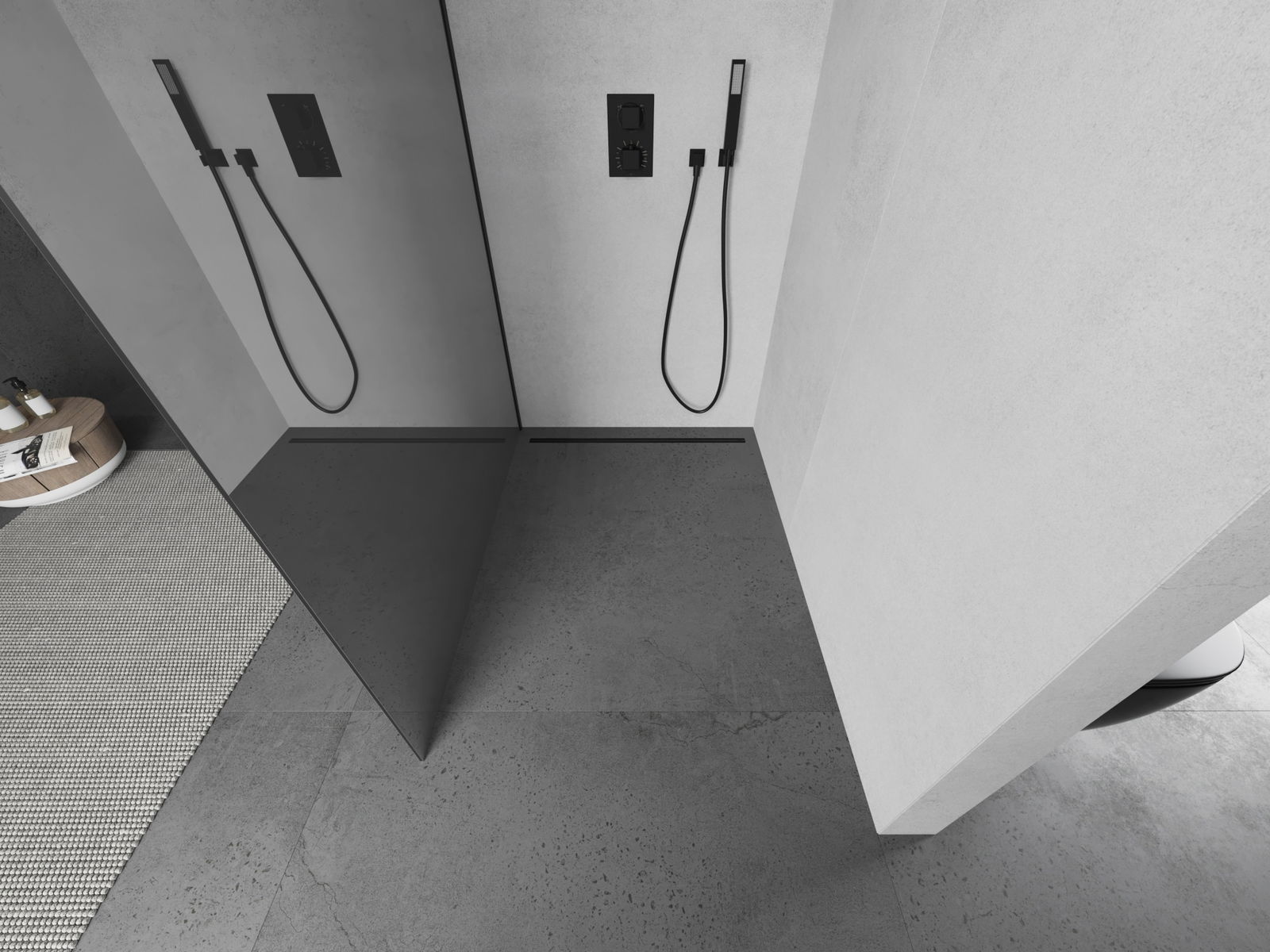Mexen Kioto dušas siena Walk-in 120 x 200 cm, spogulis 8 mm, melna - 800-120-101-70-50