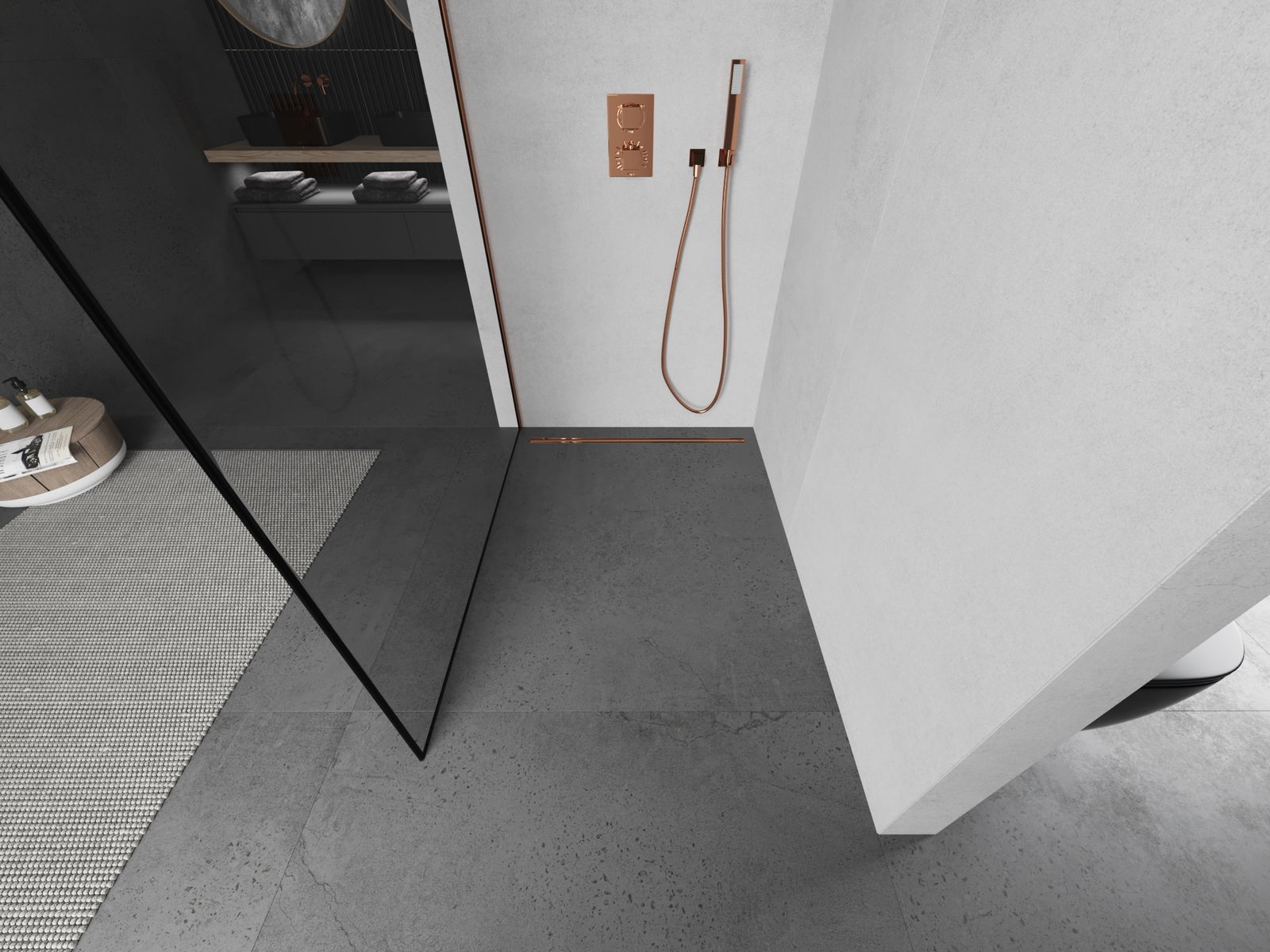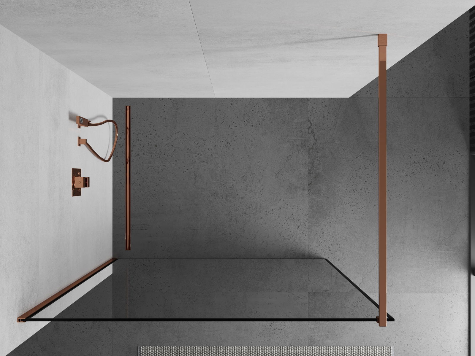 Mexen Kioto Dušas siena Walk-in 70 x 200 cm, melns rāmis 8 mm, rozā zelts - 800-070-101-60-70