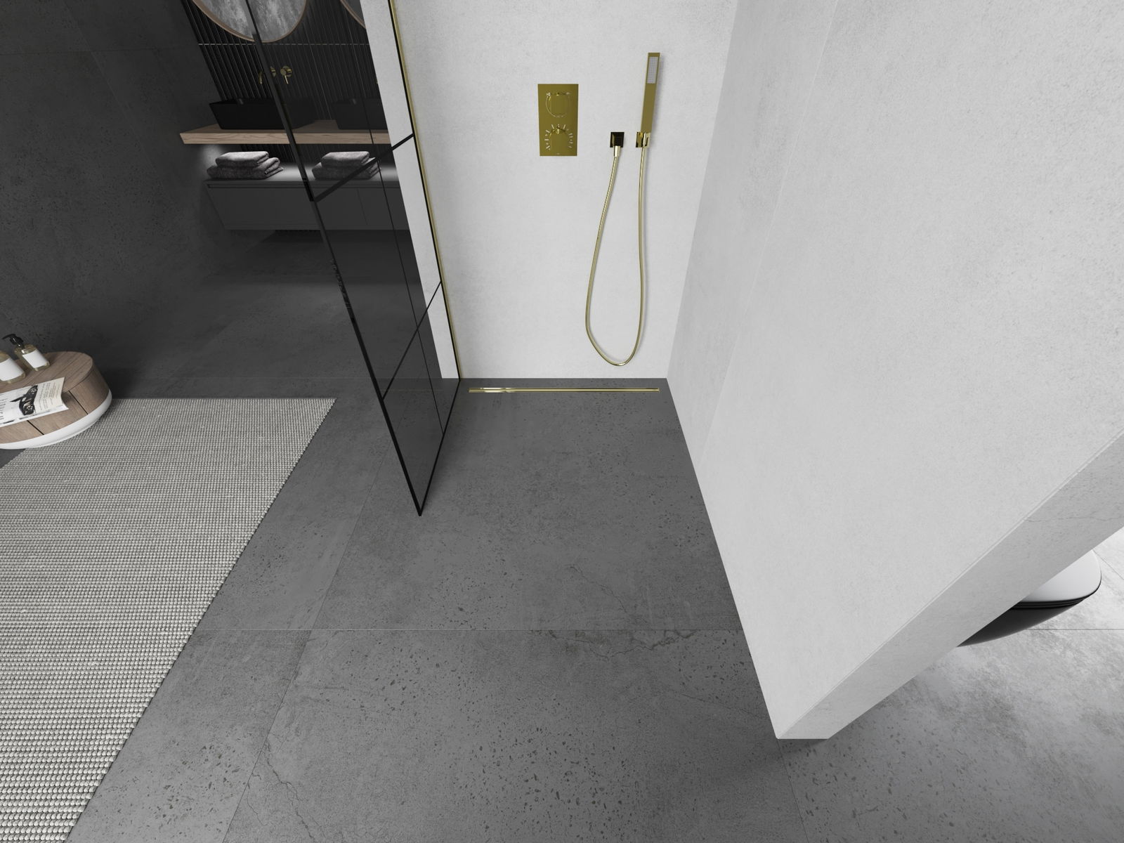 Mexen Kioto Dušas siena Walk-in 90 x 200 cm, melnā režģa 8 mm, zelta - 800-090-101-50-77