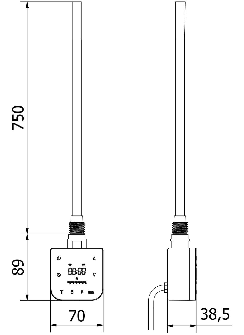 Sildīšanas elementa garums: 750 mm