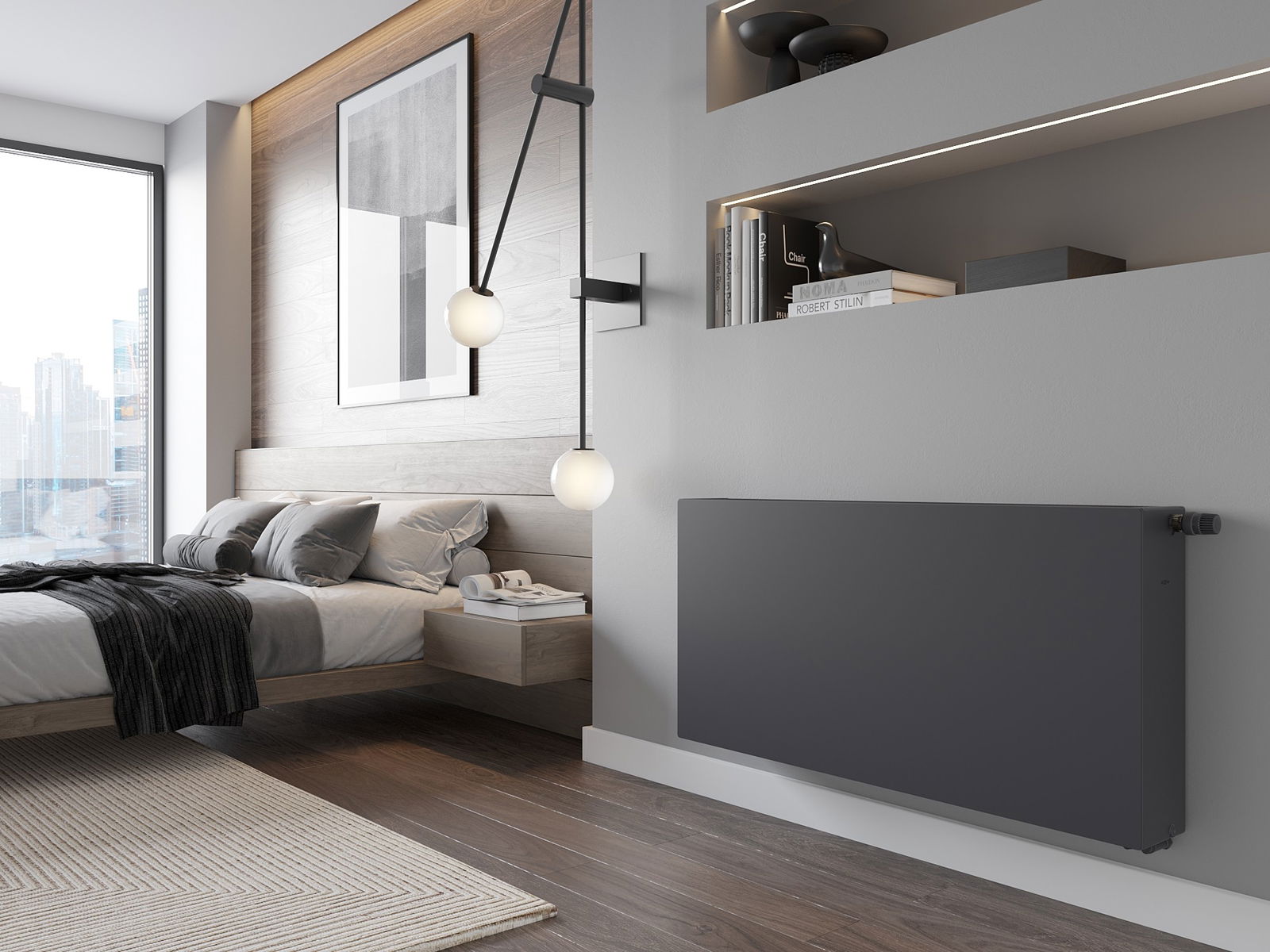 Attēli parāda radiatoru izmērā 600 x 1200 mm.