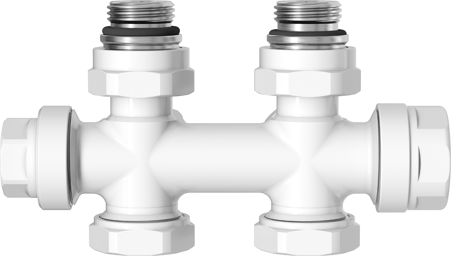 Komplektā iekļautas savienotājdetaļas daudzslāņu caurulēm 16x2 mm un vara caurulēm 15 mm