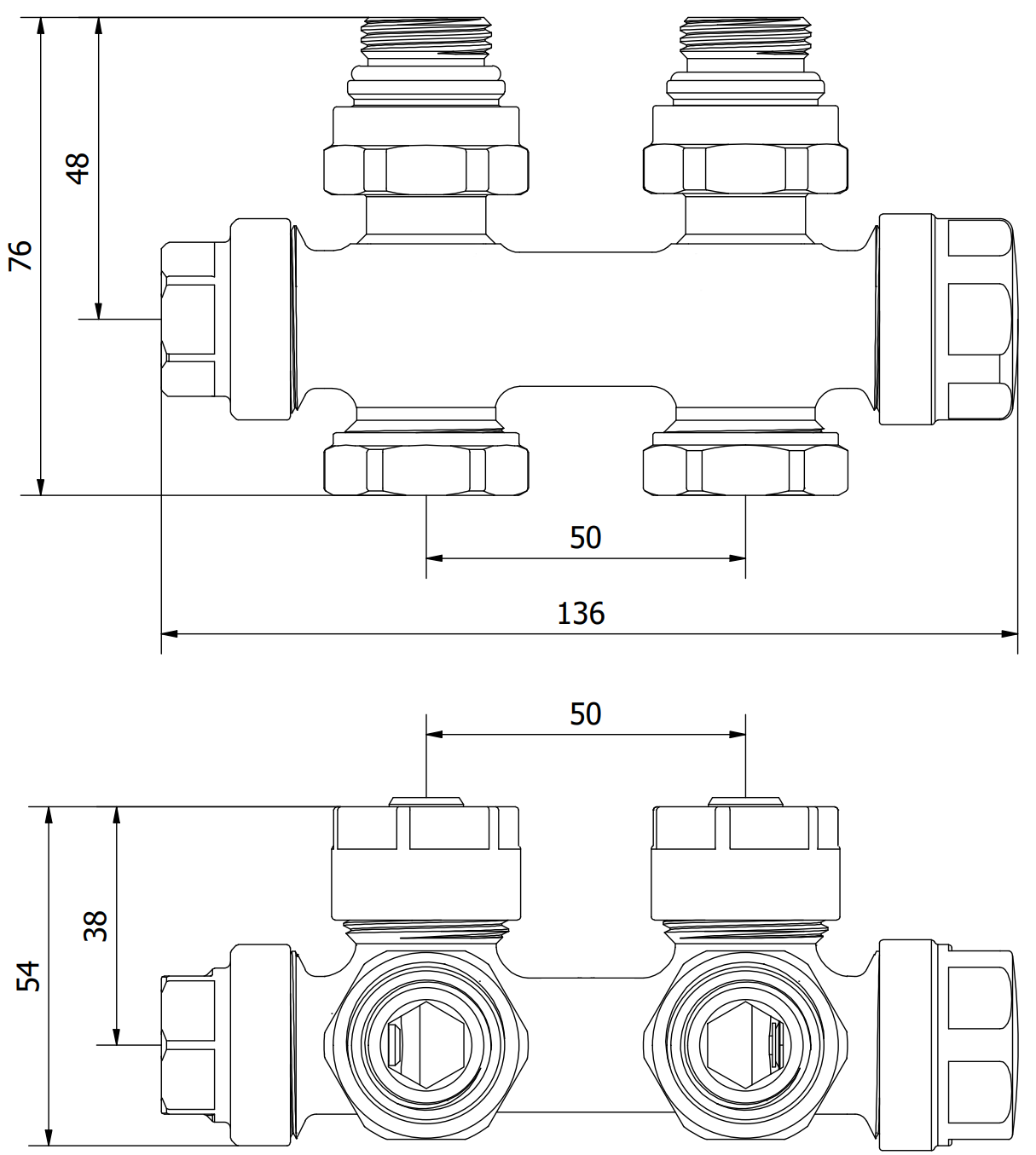 Apakšējais pieslēgums ar 50 mm atstarpi