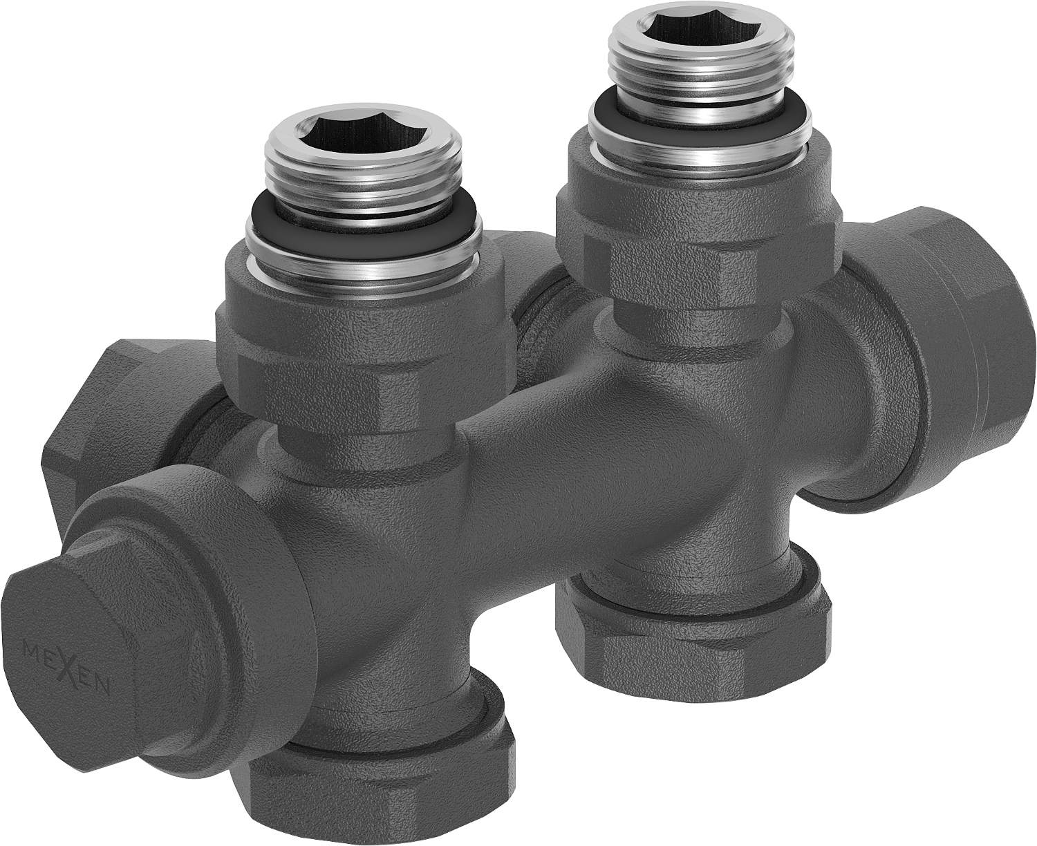 Universāls piegādes un atgriešanas vārsts leņķa un tiešiem pieslēgumiem, neatkarīgi no tā, vai pieslēgums ir sienā vai grīdā