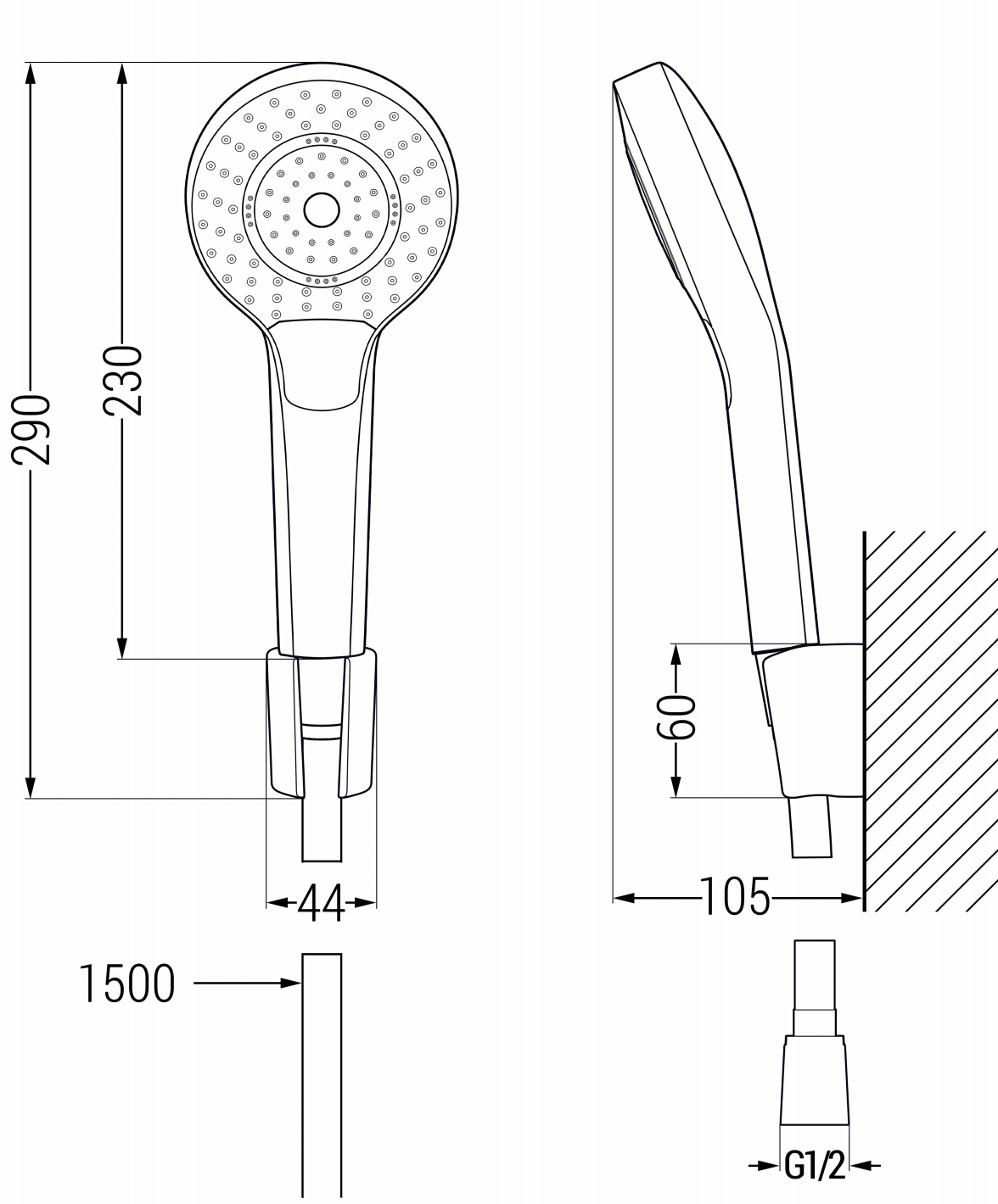 Šļūtenes garums: 150 cm