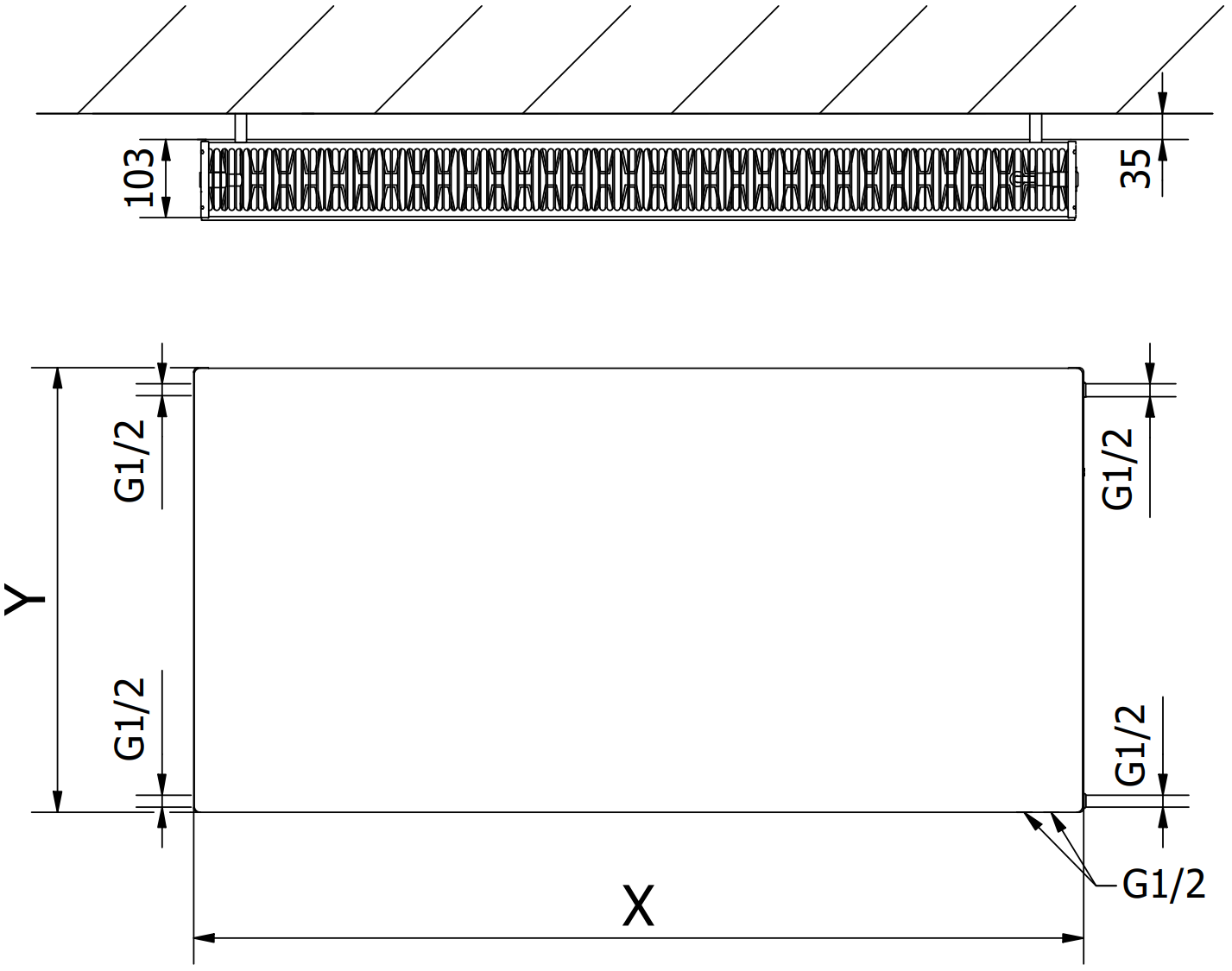 - 2xG ½″ no apakšas no labās vai kreisās puses