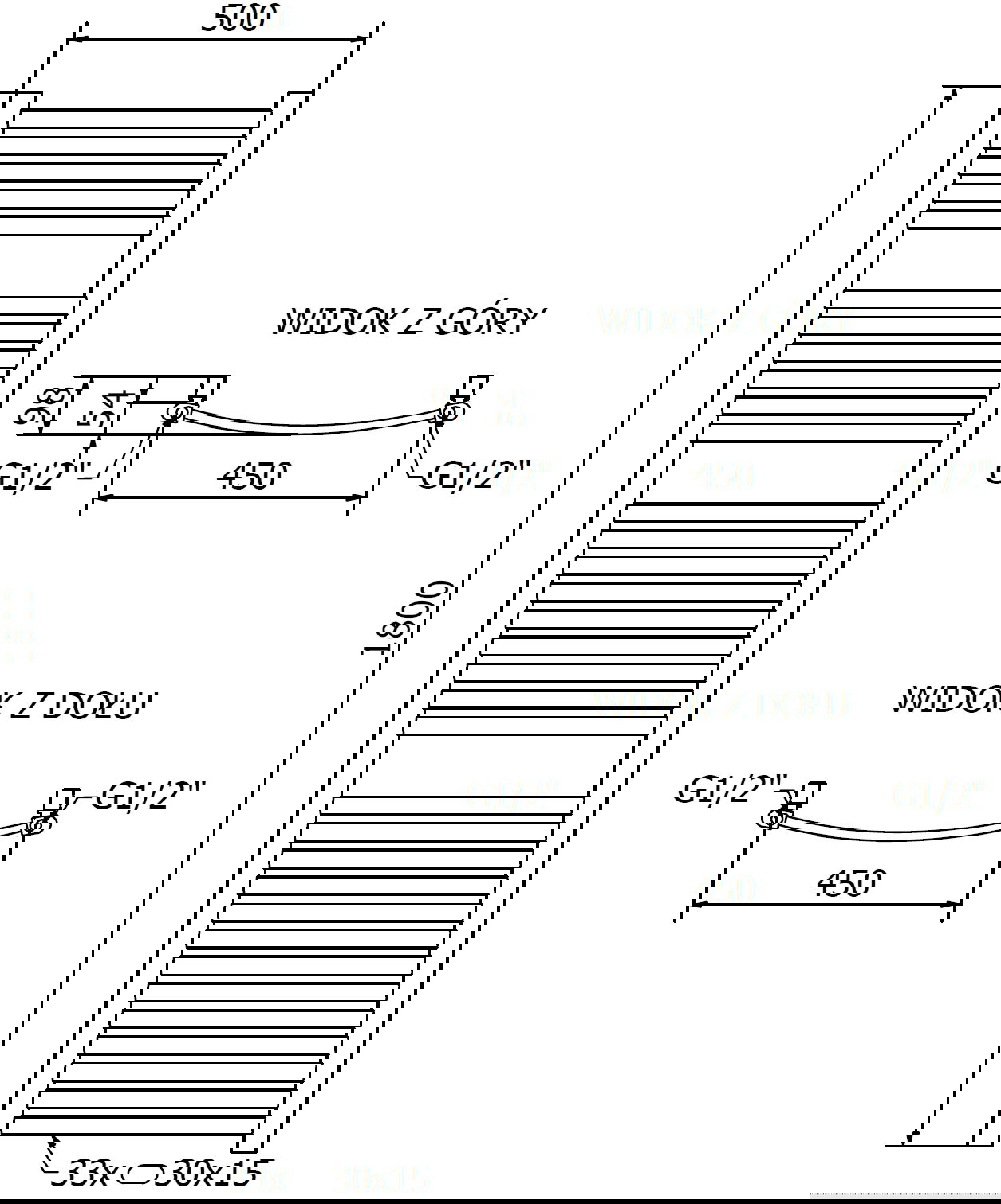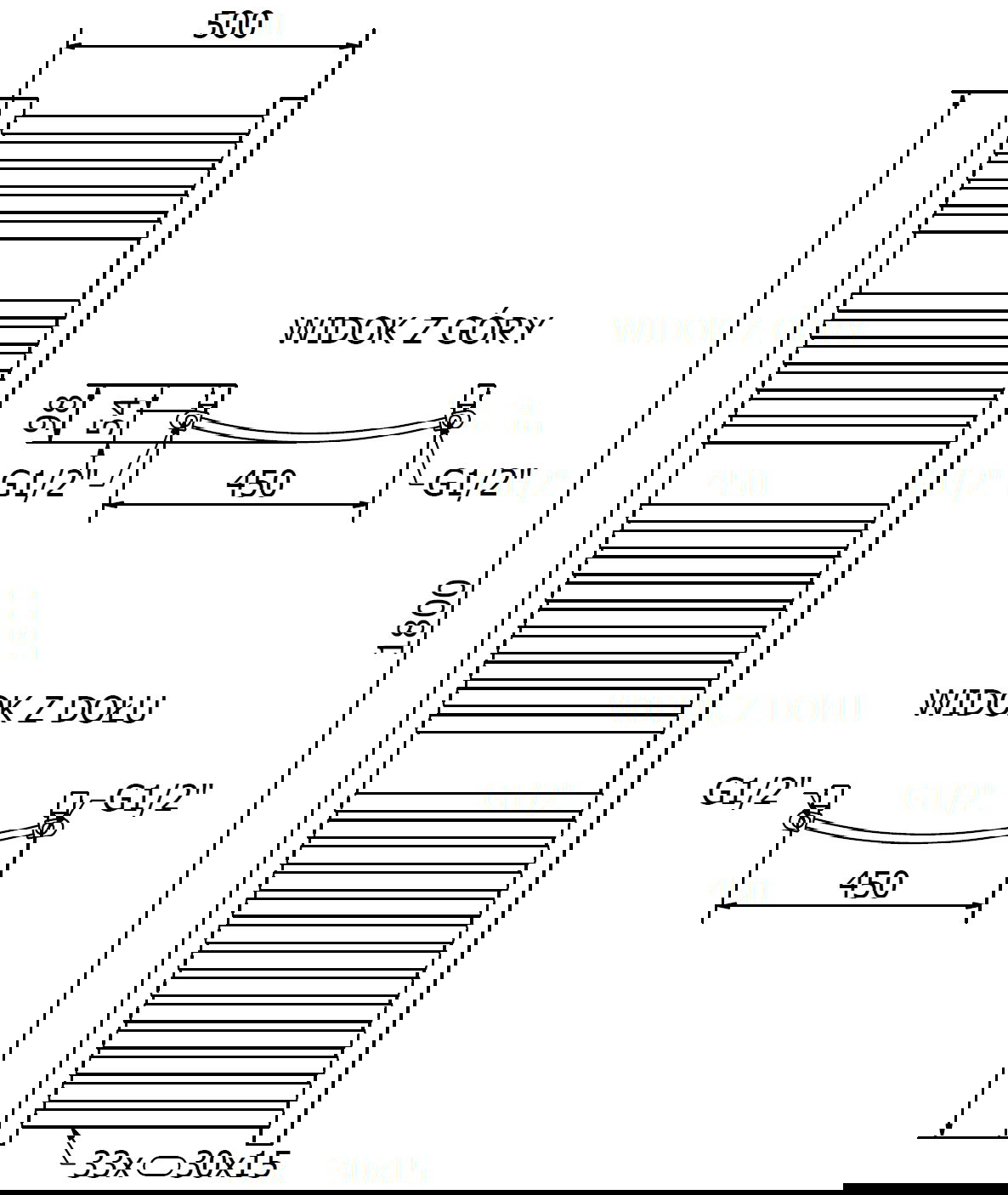- 4xG ½″ no augšas un apakšas labajā vai kreisajā pusē