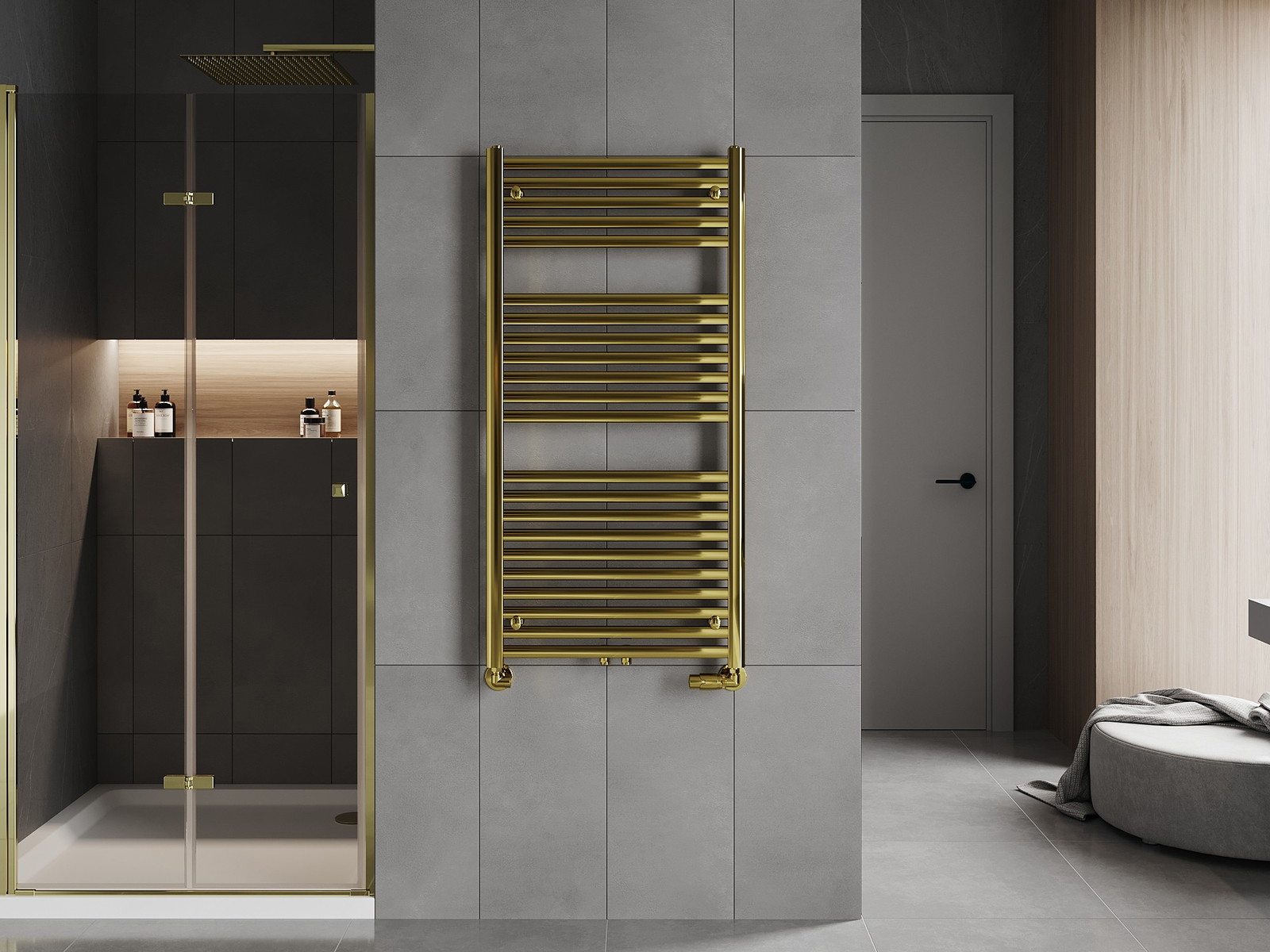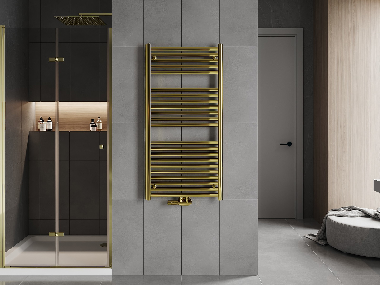 Mexen Hades ir elegants vannas istabas radiators ar izmēriem 1200 x 600 mm, kas piedāvā siltuma jaudu 527 W. Tā zelta krāsa un tērauda konstrukcija lieliski apvieno estētiku ar funkcionalitāti. Radiatoram ir elastīgas pieslēguma iespējas ar 55 cm apakšējo vai 5 cm vidējo attālumu, kas atvieglo uzstādīšanu. Lieliska reakcija uz uguni ir A1, un maksimālā darba temperatūra ir 95°C pie spiediena 0,6 Mpa. Izcila izturība un pārklājums ar izturību pret koroziju nodrošina ilgstošu lietošanu. Komplektā ietilpst montāžas piederumi.