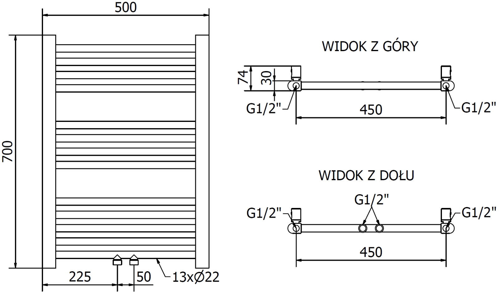 - 4xG ½″ no augšas un apakšas labajā vai kreisajā pusē