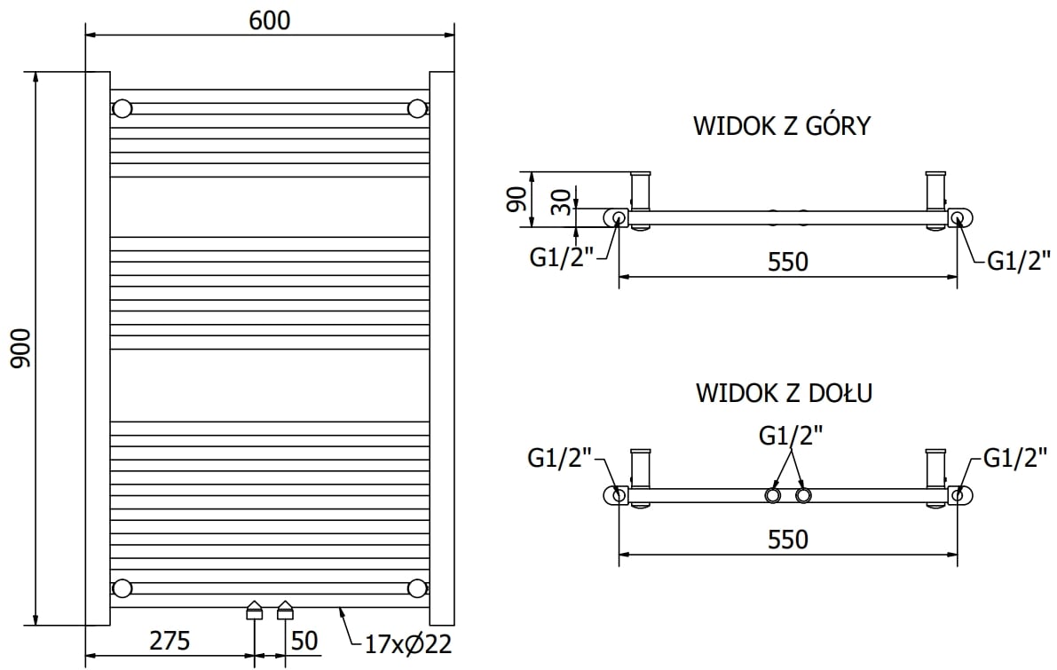 Mexen Mars vannas istabas radiators 900 x 600 mm, 430 W, antracīts - W110-0900-600-00-66