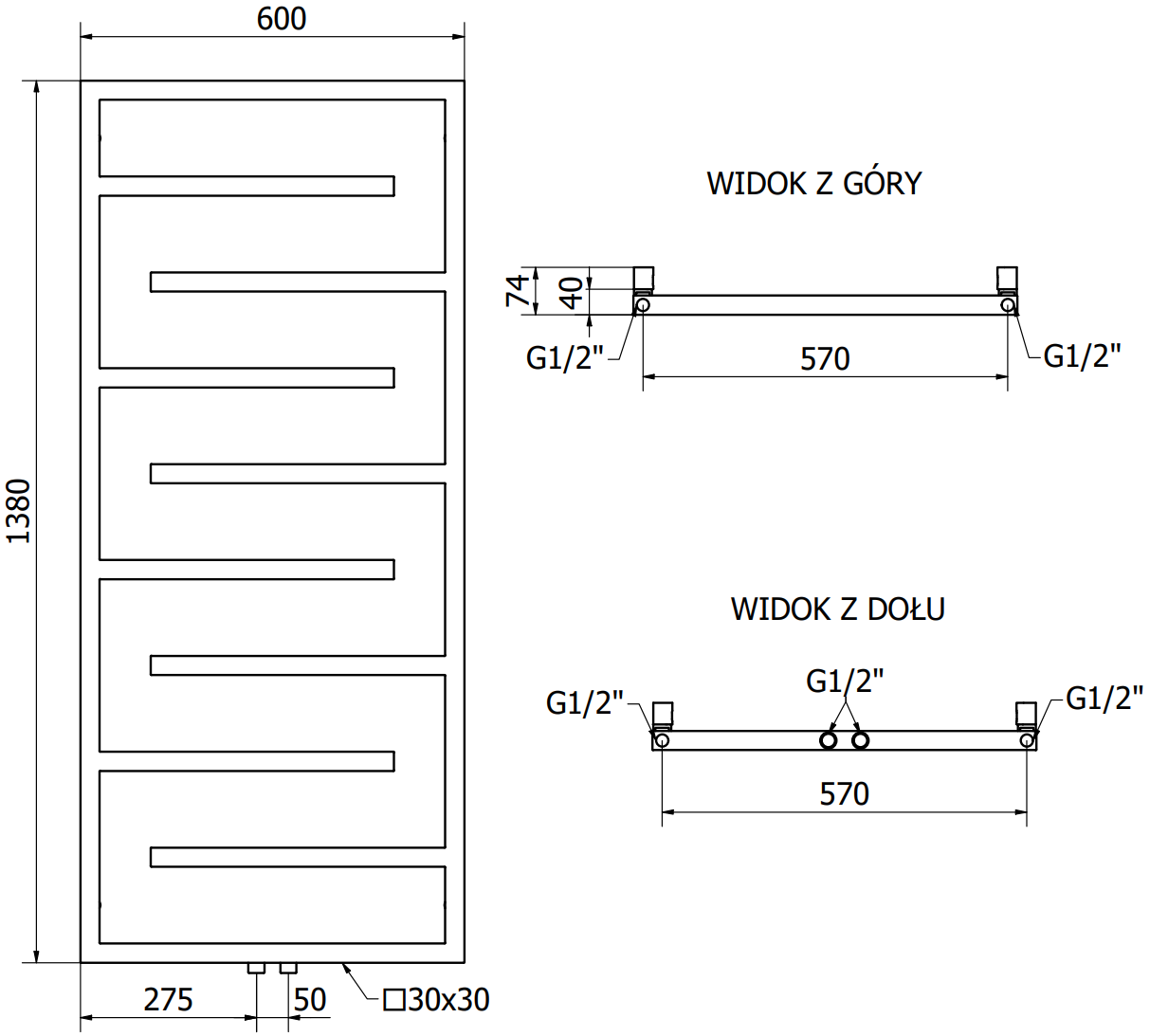 - 4xG ½″ no augšas un apakšas labajā vai kreisajā pusē