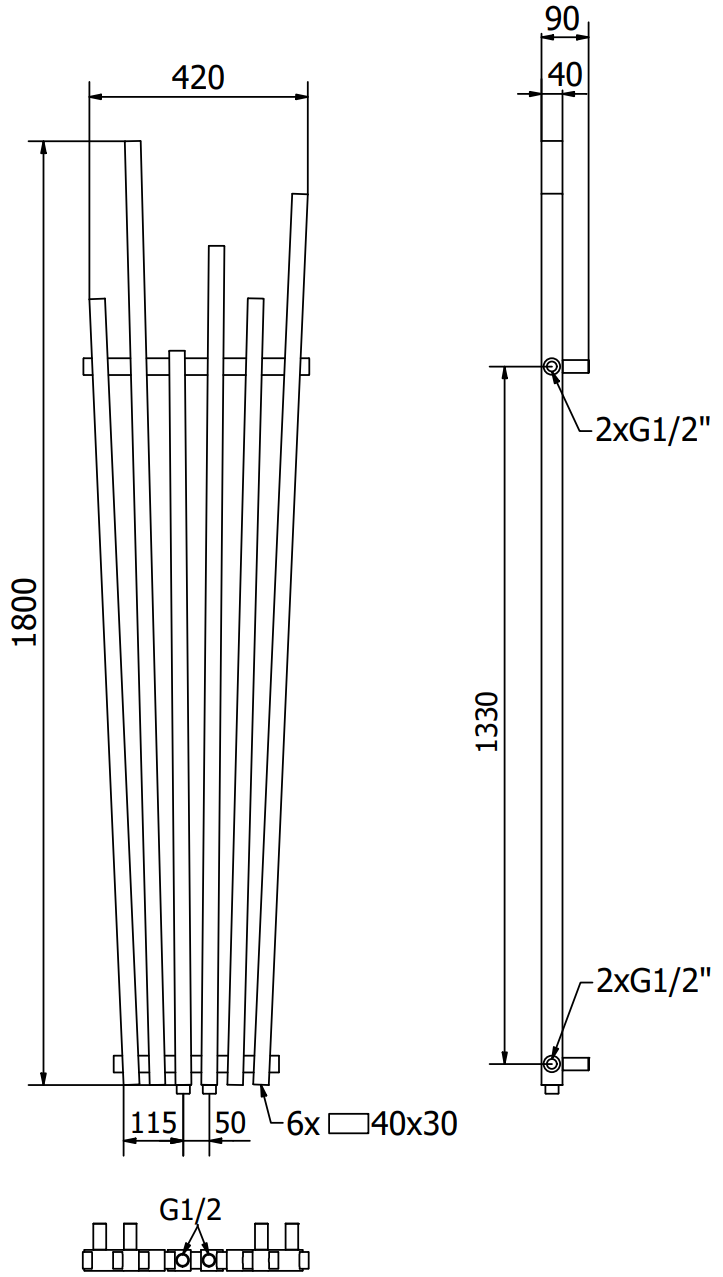 - 2xG ½″ centrālie