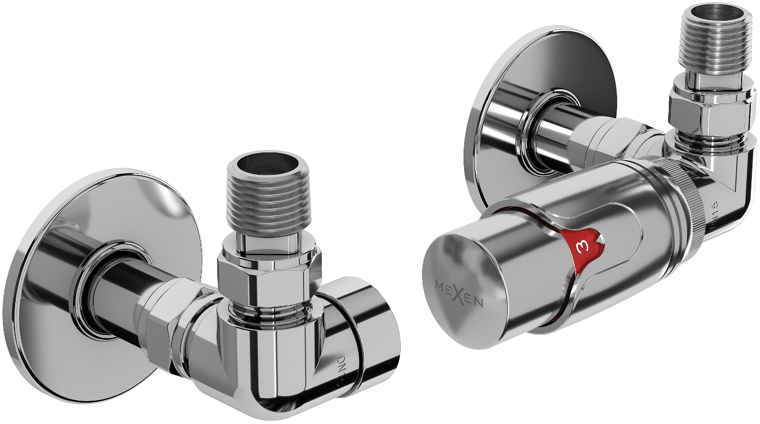 Komplektā ietilpst radiatora pievades un atdalīšanas vārsts