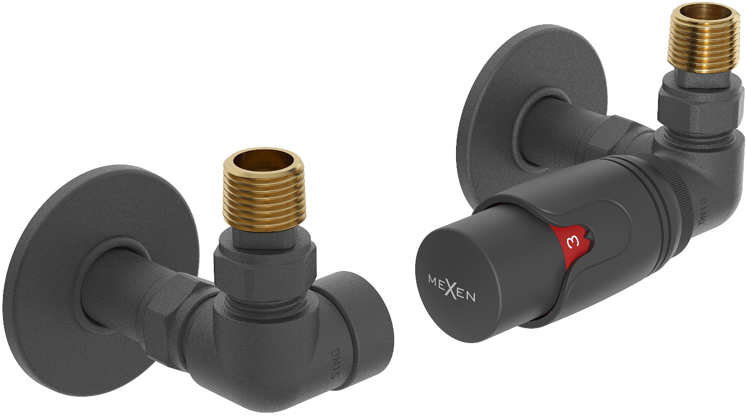 Kopā komplektā ir radiatora pievades un noslēgšanas vārsts