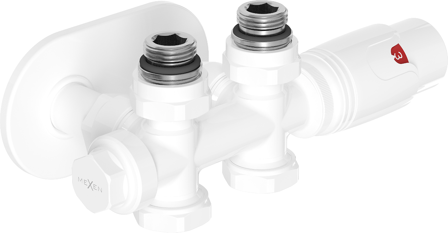 Universāls barošanas un noslēdzošais vārsts leņķa un tiešiem pieslēgumiem, neatkarīgi no tā, vai pieslēgums ir sienā vai grīdā