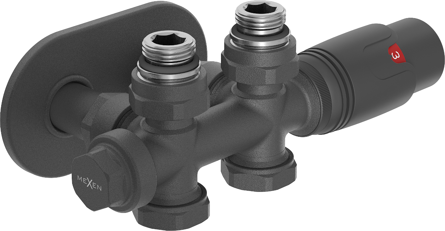 Universālais barošanas un izslēgšanas vārsts leņķa un tiešo savienojumu veikšanai, neatkarīgi no tā, vai savienojums ir sienā vai grīdā